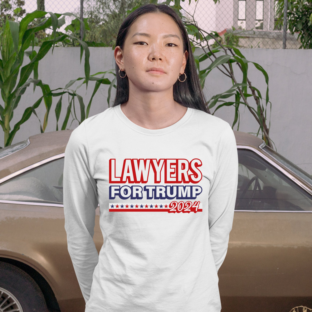 A political print saying "lawyers for Trump 2024". A great choice to wear for a Trump rally or give as a gift to a Donald Trump supporter before 2024 presidential elections.