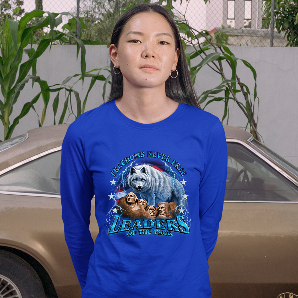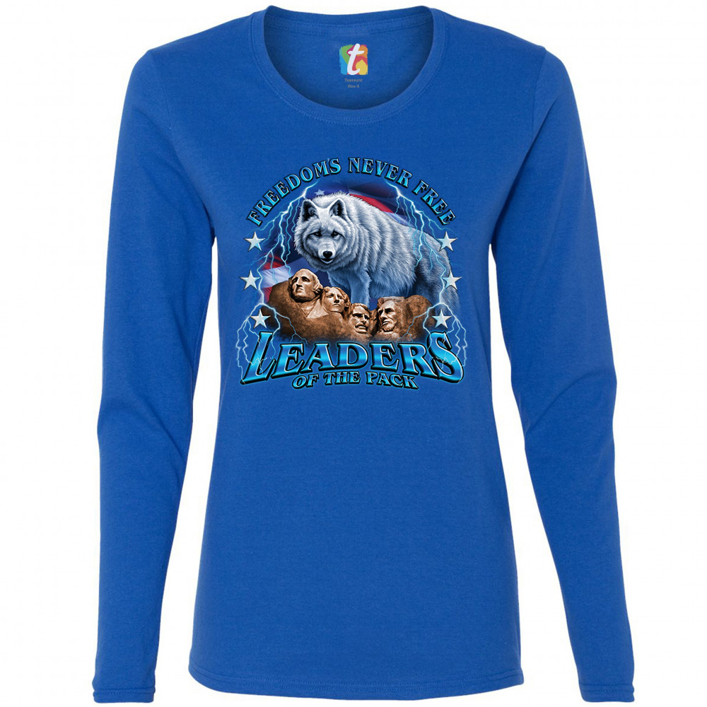 LEADERS OF THE PACK women's long sleeve t-shirt mount rushmore 4th of july royal blue