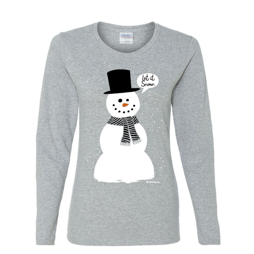LET IT SNOW women's long sleeve t-shirt funny snowman christmas xmas gray