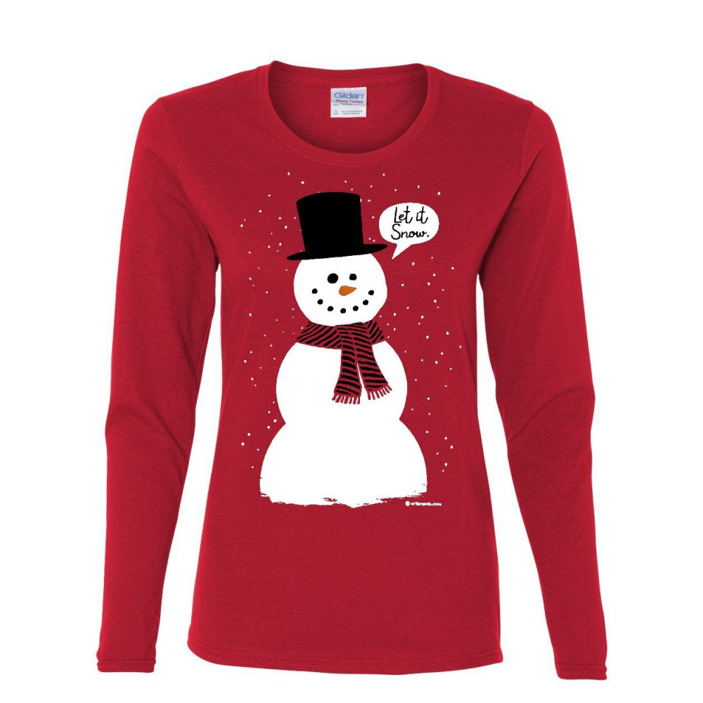LET IT SNOW women's long sleeve t-shirt funny snowman christmas xmas red