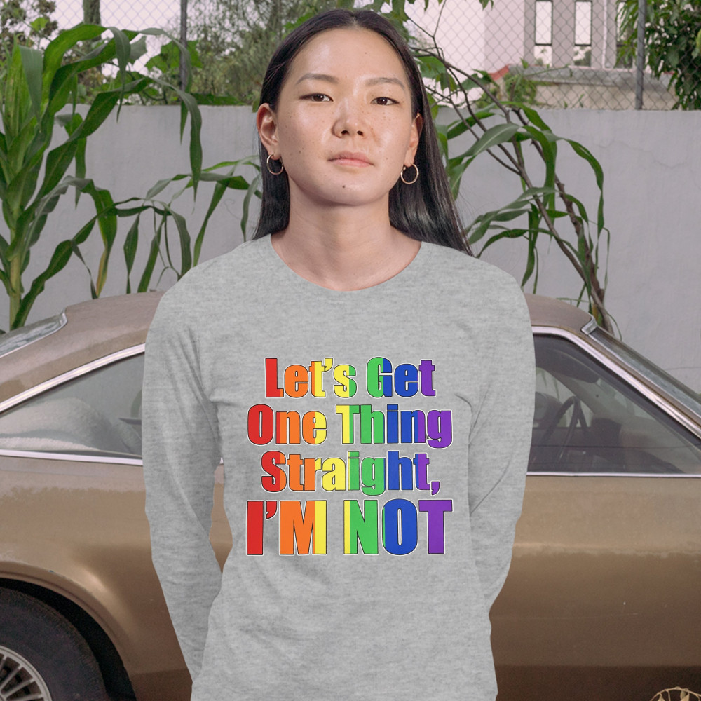 LET'S GET ONE THING STRAIGHT, I'M NOT women's long sleeve t-shirt lgbt rainbow gray