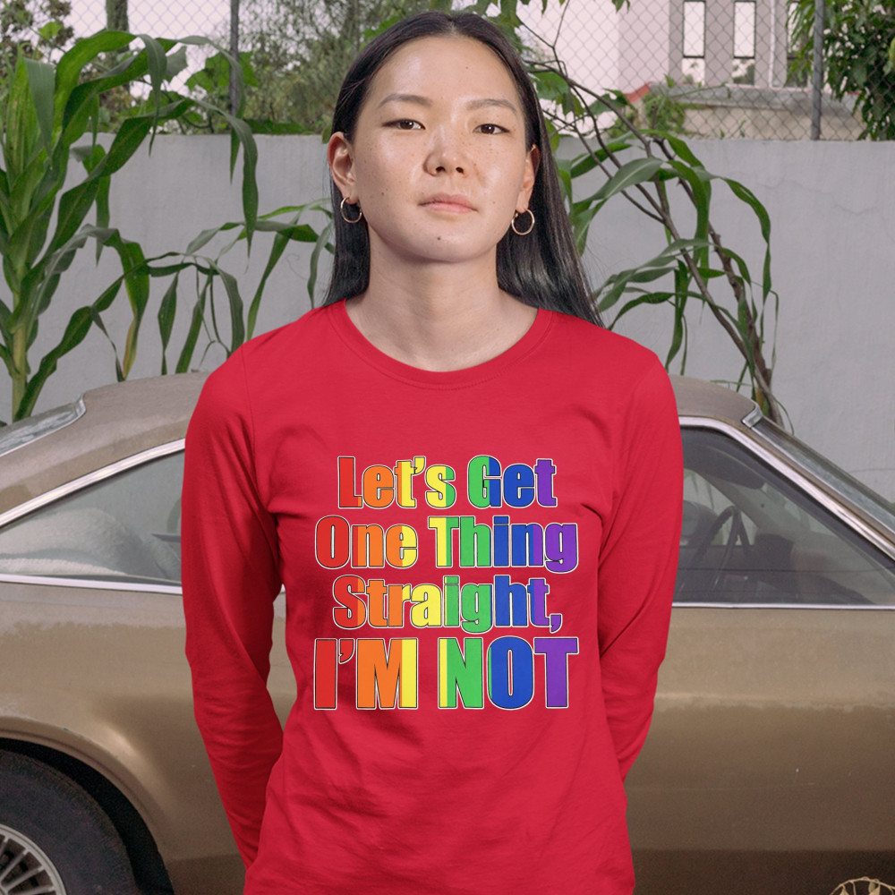 LET'S GET ONE THING STRAIGHT, I'M NOT women's long sleeve t-shirt lgbt rainbow red