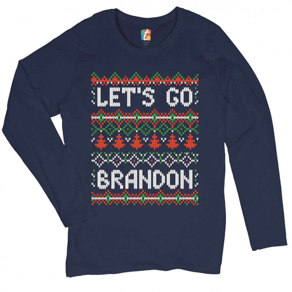 LET'S GO BRANDON women's long sleeve t-shirt ugly sweater christmas anti biden navy blue