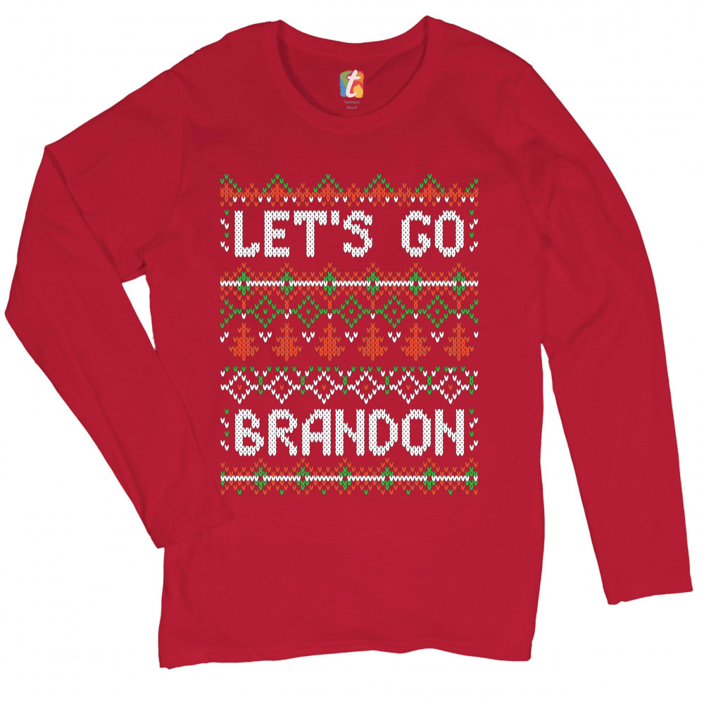 LET'S GO BRANDON women's long sleeve t-shirt ugly sweater christmas anti biden red