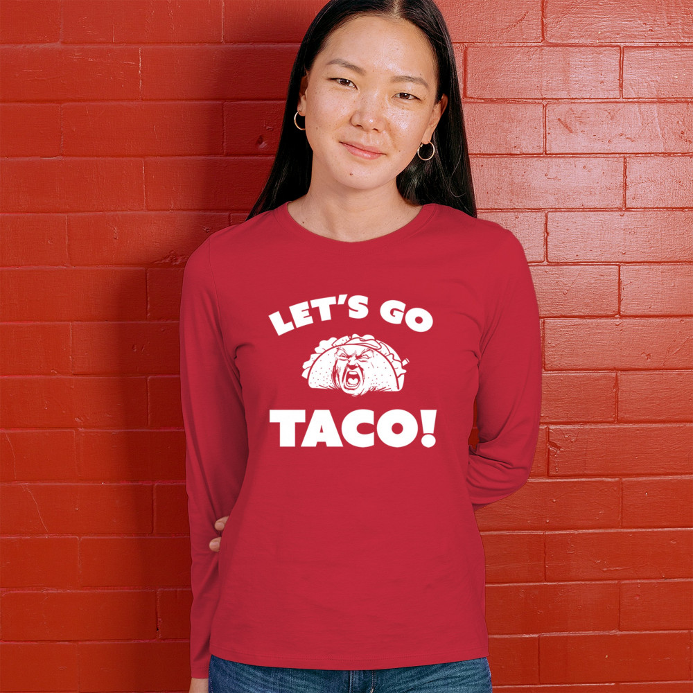 Let’s Go TACO means Trump Always Chickens Out—a bold protest design mocking cowardice, cult politics, and authoritarian fanboys.