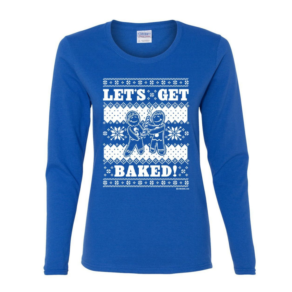 LET'S GET BAKED 420 women's long sleeve tee ugly sweatshirt christmas royal blue