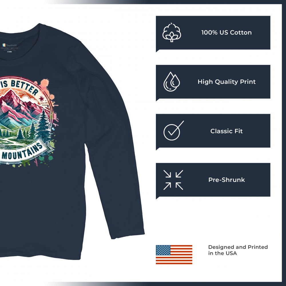 Life Is Better in the Mountains is designed for nature lovers, campers, and trail hikers who find peace in high altitudes. This colorful mountain scene captures wilderness vibes, camping escapes, and weekend hiking energy. Ideal for forest lovers, off-grid adventurers, and glamping fans alike.