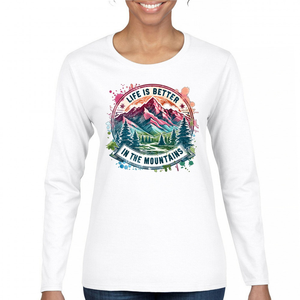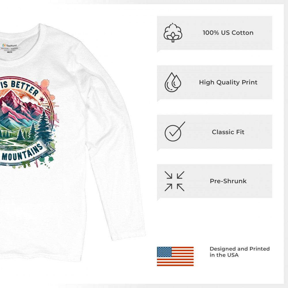 Life Is Better in the Mountains is designed for nature lovers, campers, and trail hikers who find peace in high altitudes. This colorful mountain scene captures wilderness vibes, camping escapes, and weekend hiking energy. Ideal for forest lovers, off-grid adventurers, and glamping fans alike.