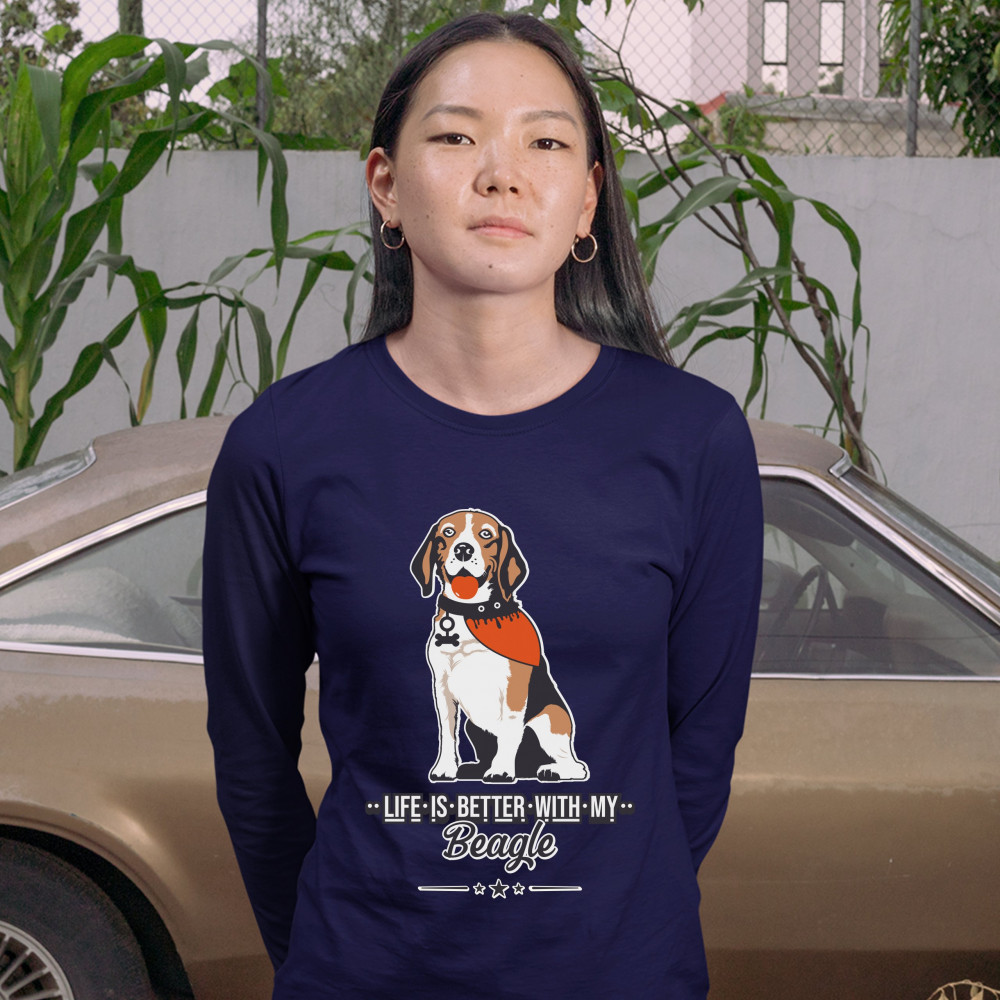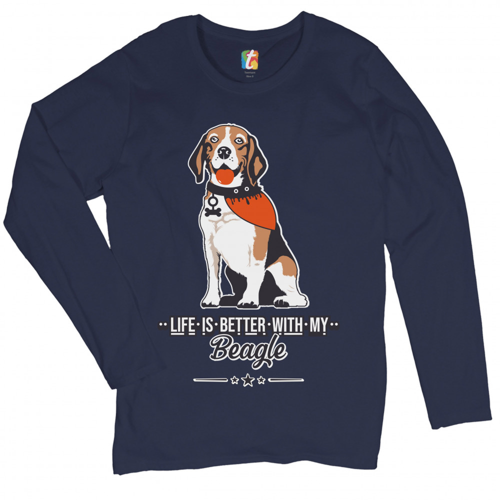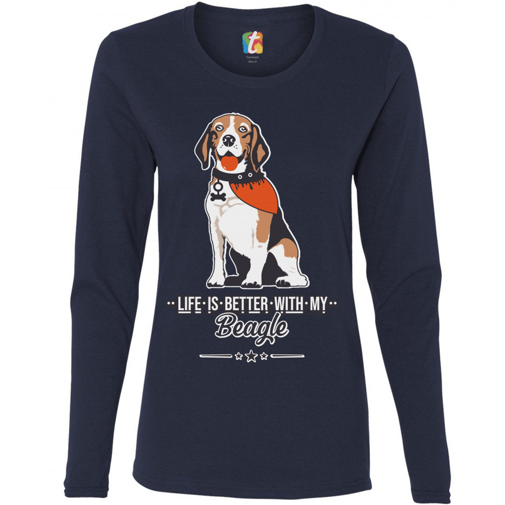 LIFE IS BETTER WITH MY BEAGLE women's long sleeve t-shirt i love my dog pet navy blue