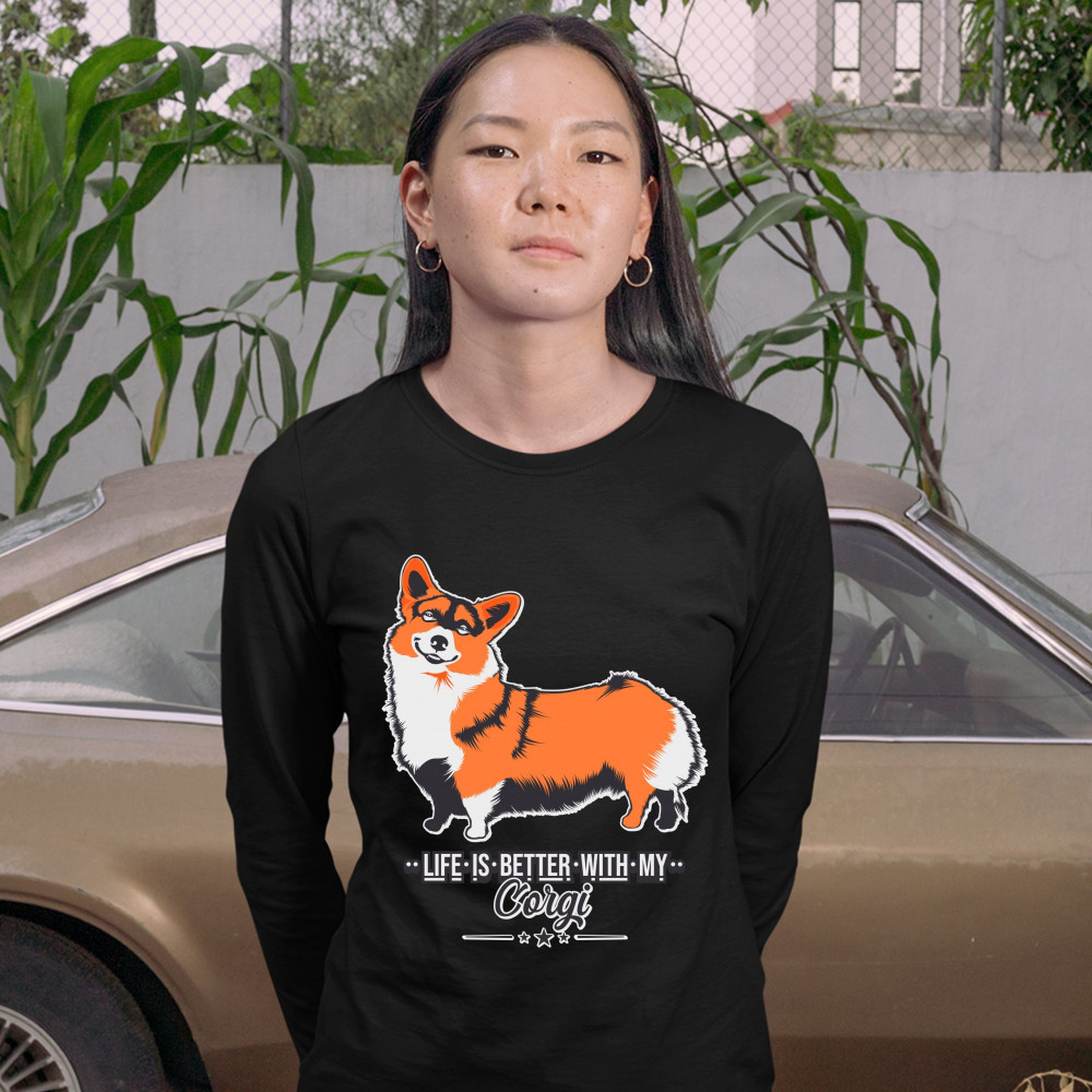 LIFE IS BETTER WITH MY CORGI women's long sleeve t-shirt best friend dog lover black