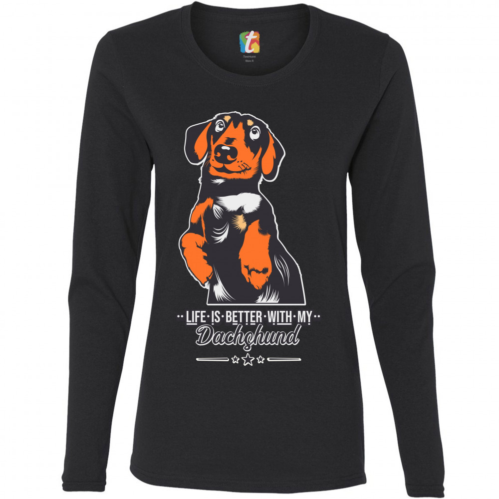 LIFE IS BETTER WITH MY DACHSUND women's long sleeve t-shirt i love my dog pet black