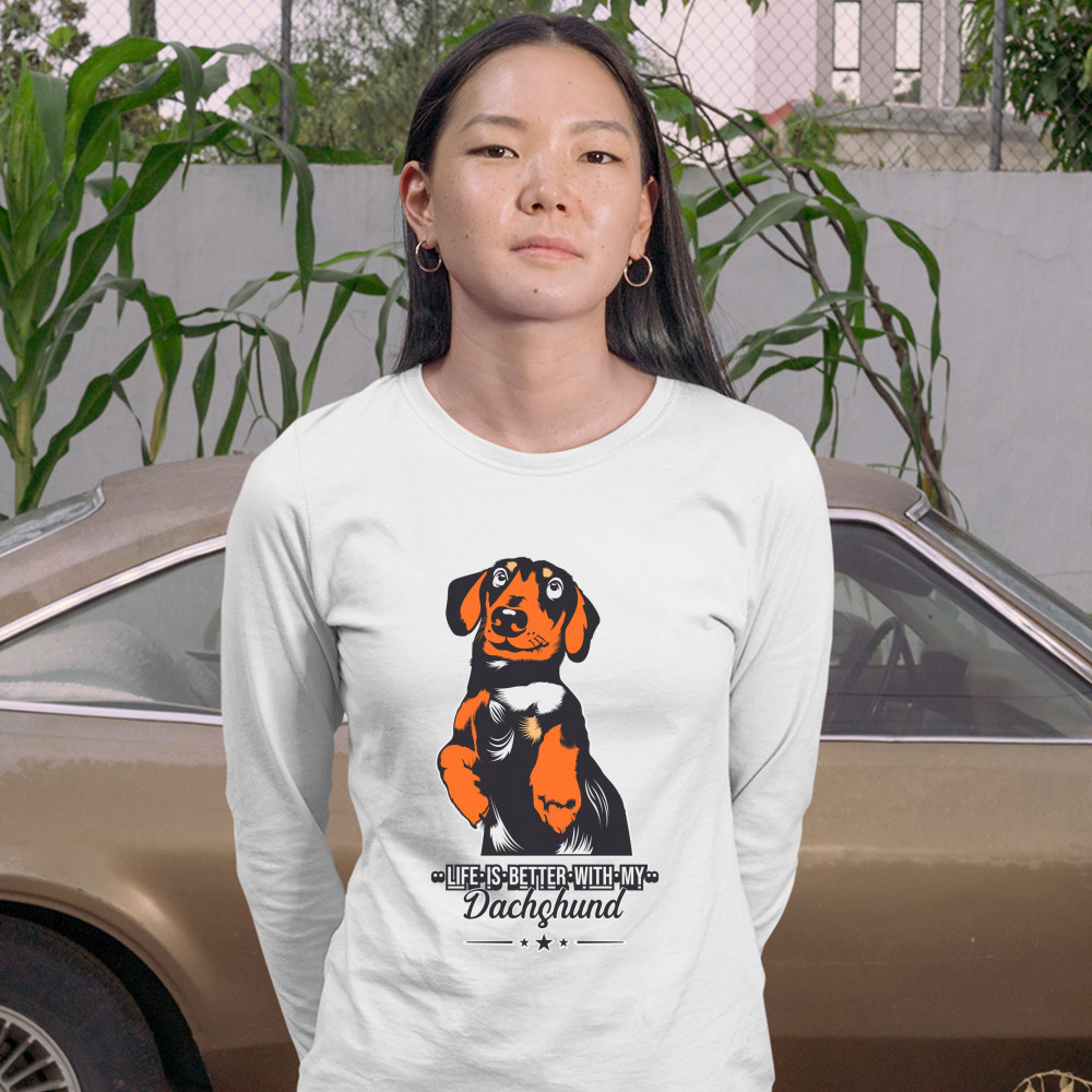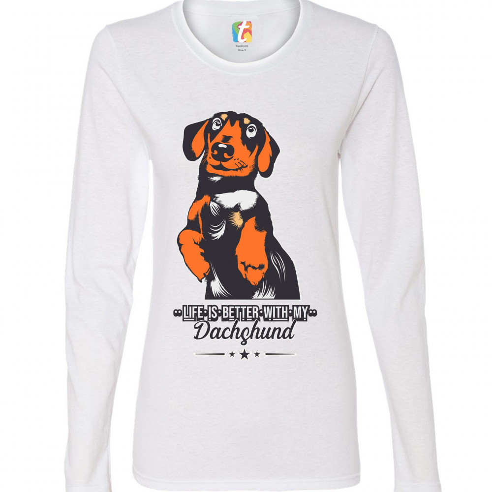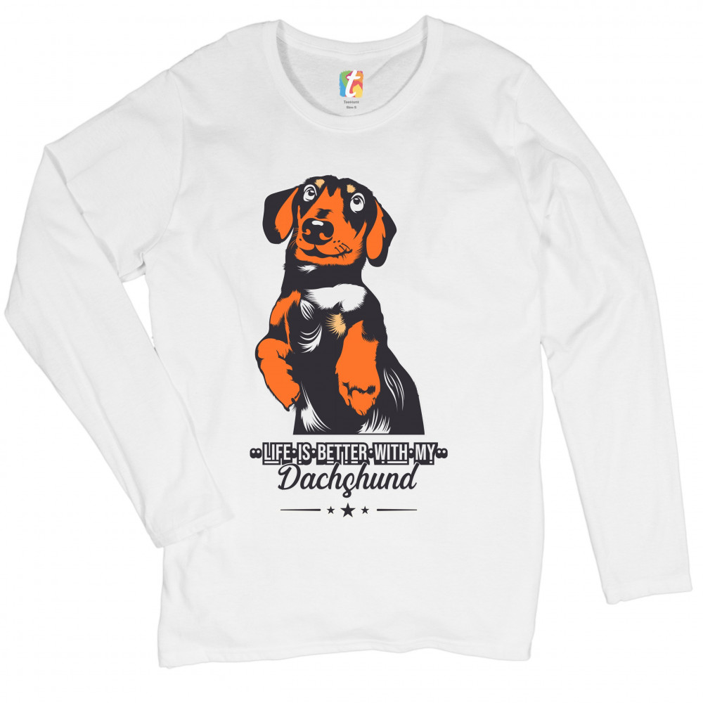 LIFE IS BETTER WITH MY DACHSUND women's long sleeve t-shirt i love my dog pet white