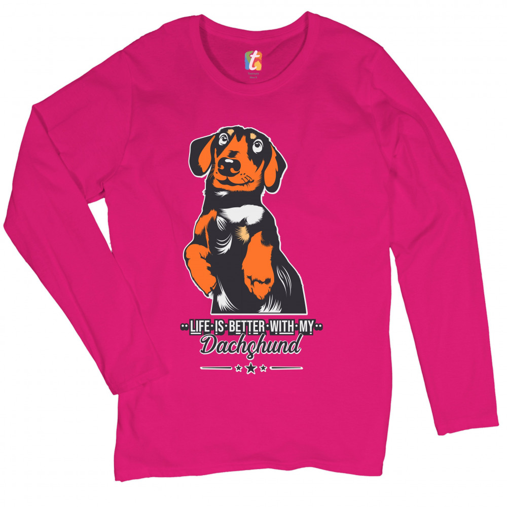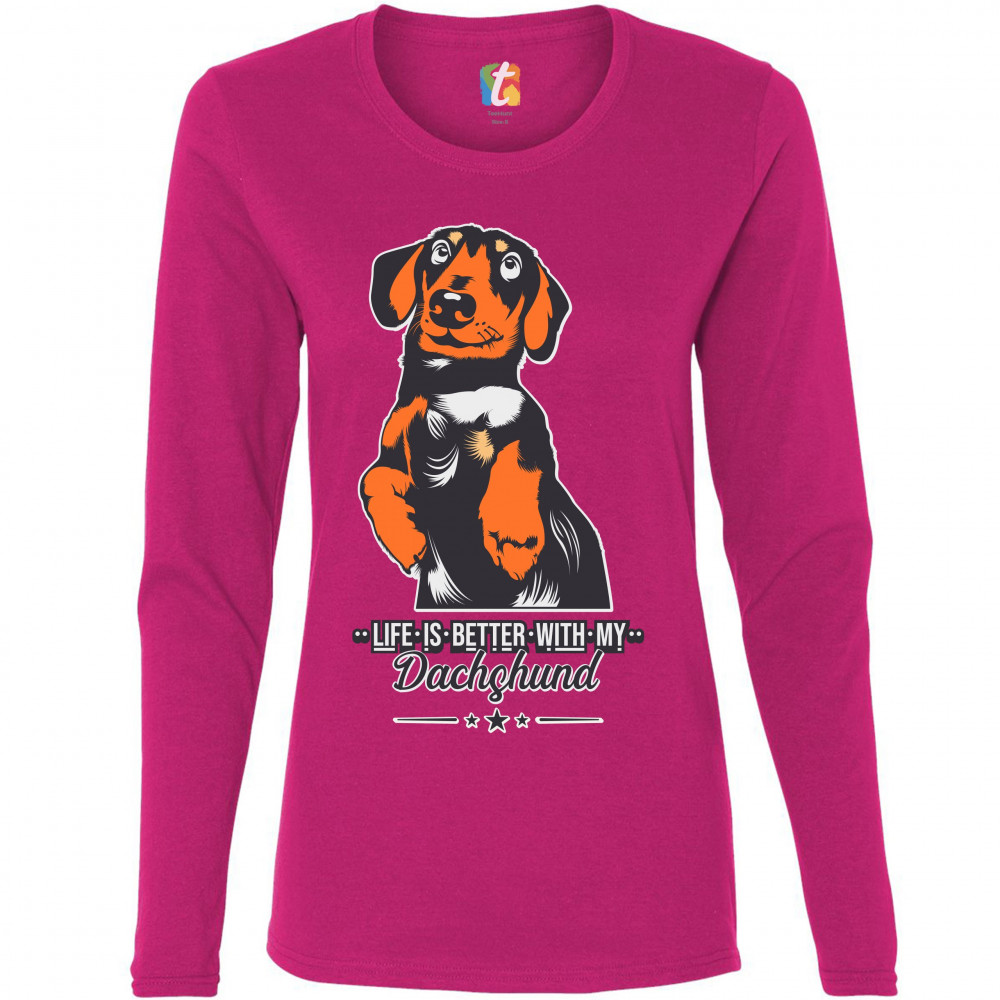 LIFE IS BETTER WITH MY DACHSUND women's long sleeve t-shirt i love my dog pet pink