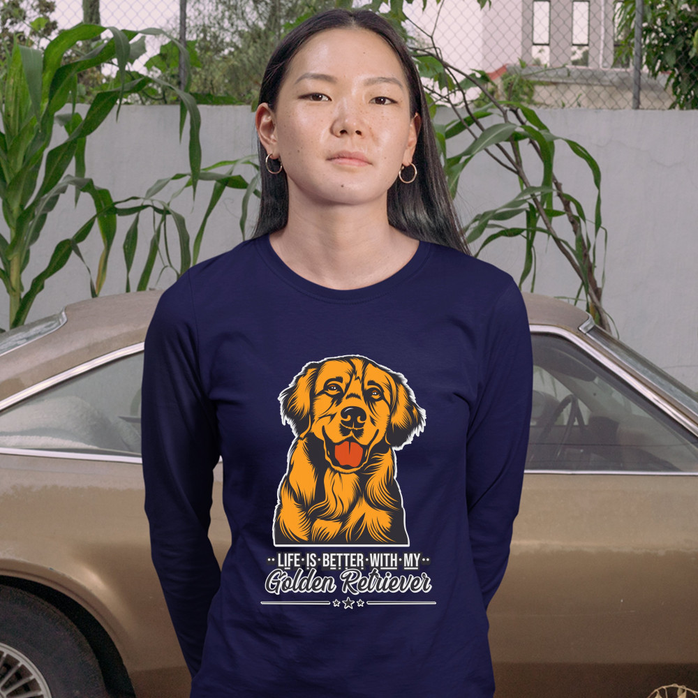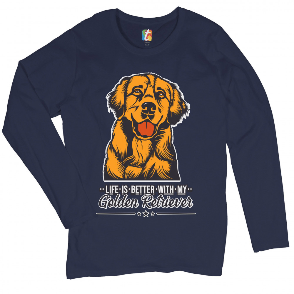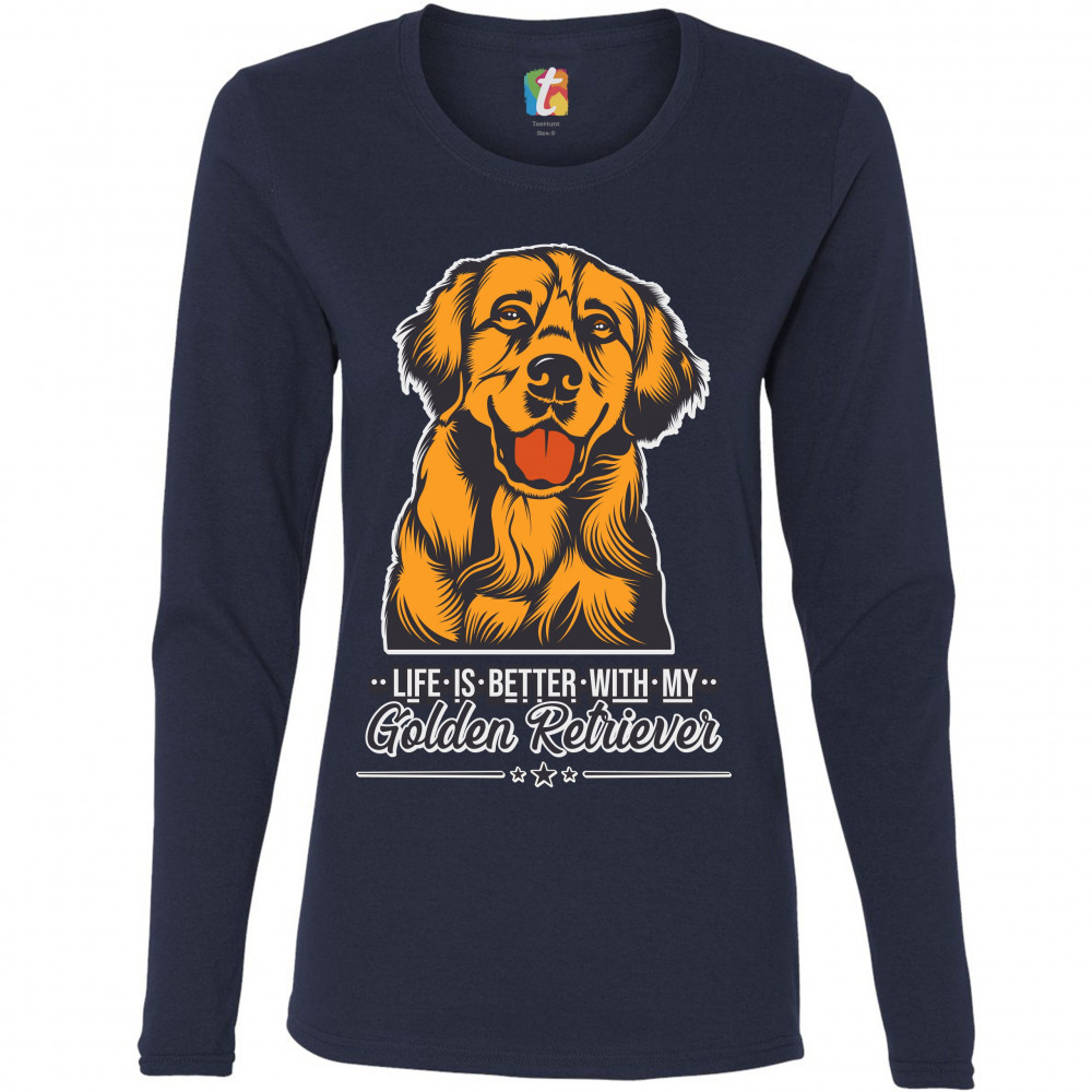 LIFE IS BETTER WITH MY GOLDEN RETRIEVER women's long sleeve t-shirt dog owner navy blue