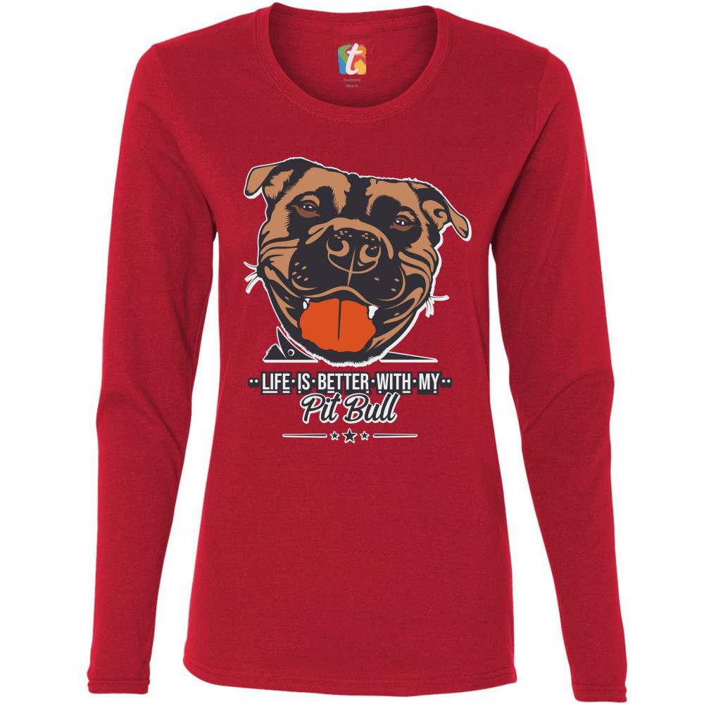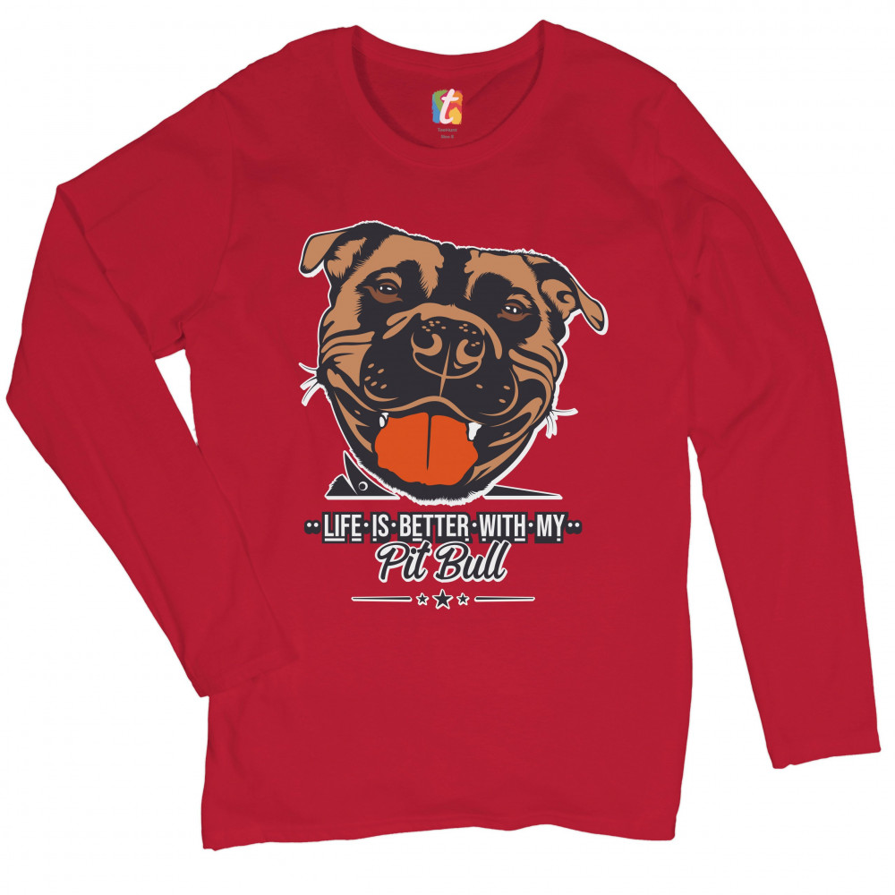 LIFE IS BETTER WITH MY PIT BULL women's long sleeve t-shirt i love me dog pet red