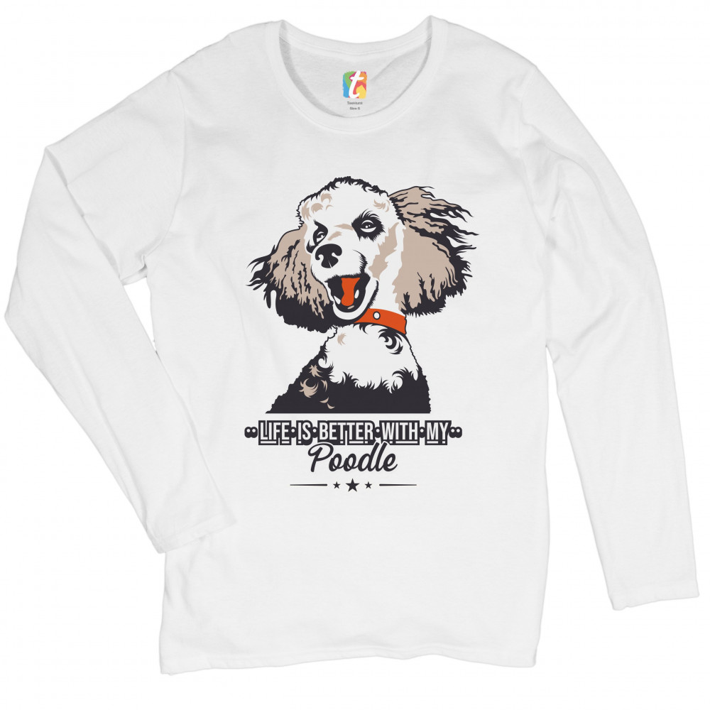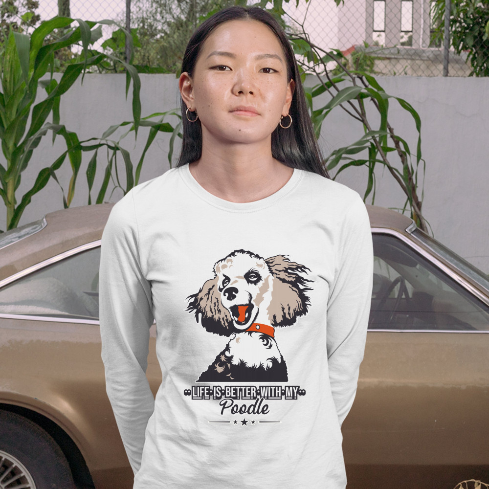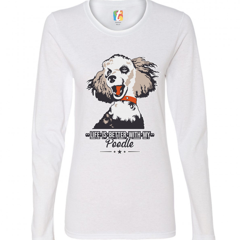 LIFE IS BETTER WITH MY POODLE women's long sleeve t-shirt cute puppy dog lover white