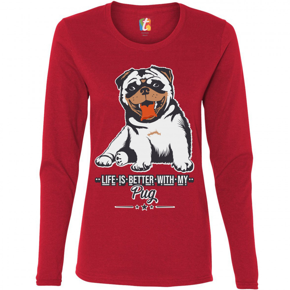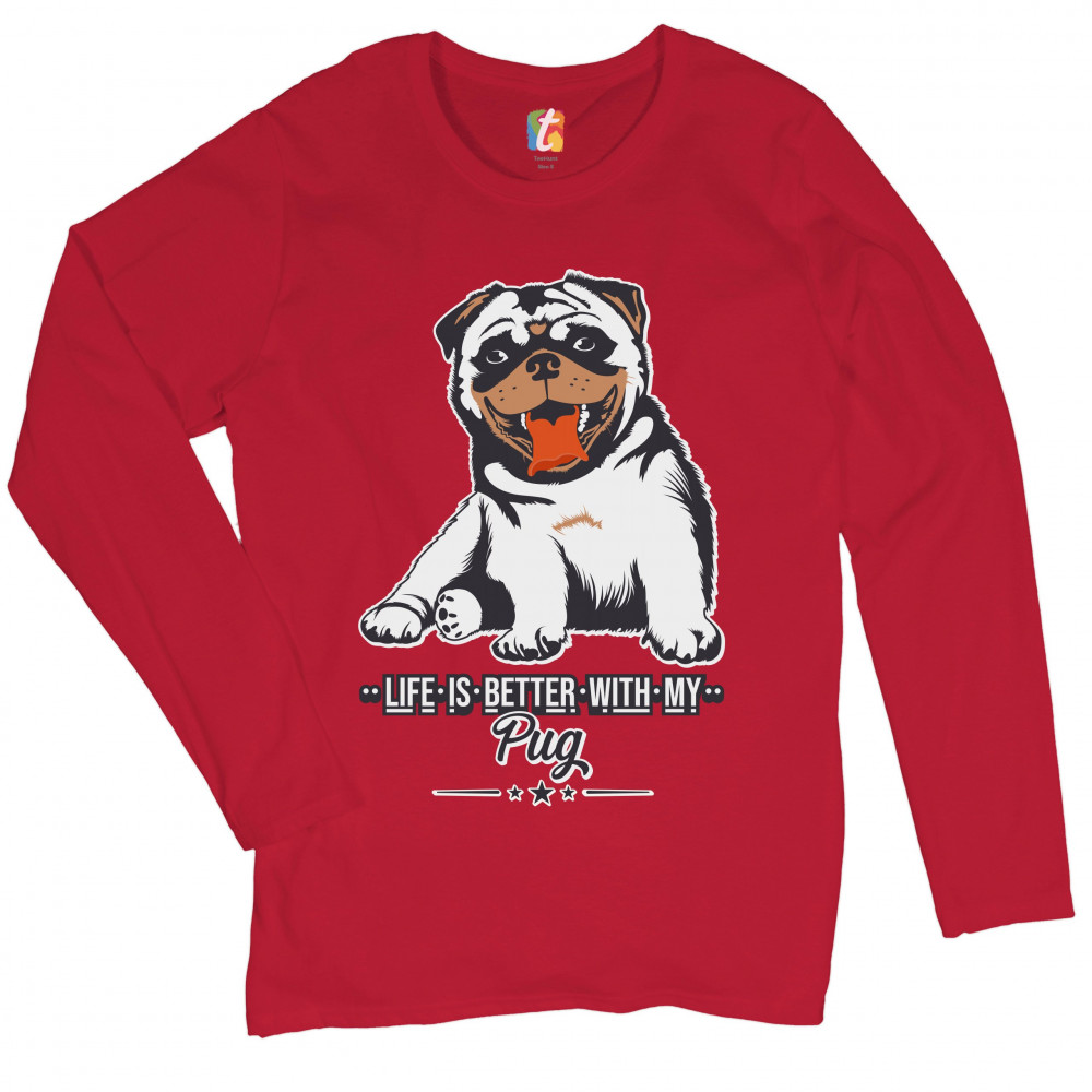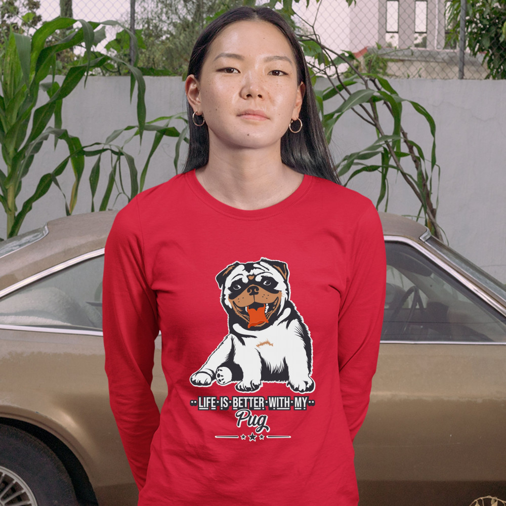 LIFE IS BETTER WITH MY PUG women's long sleeve t-shirt cute pet adorable dog red