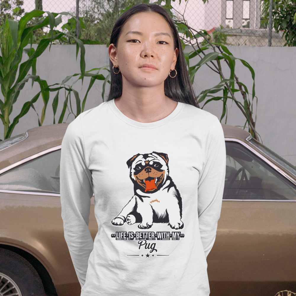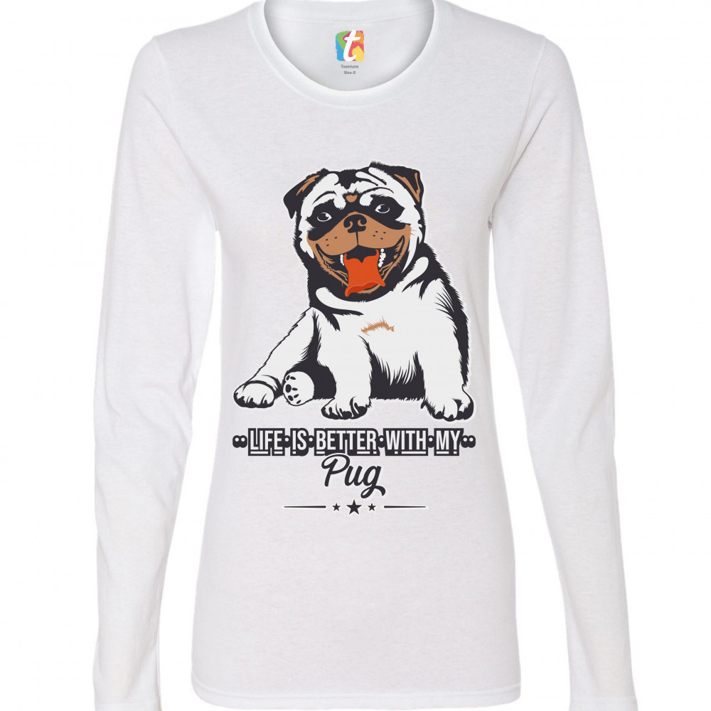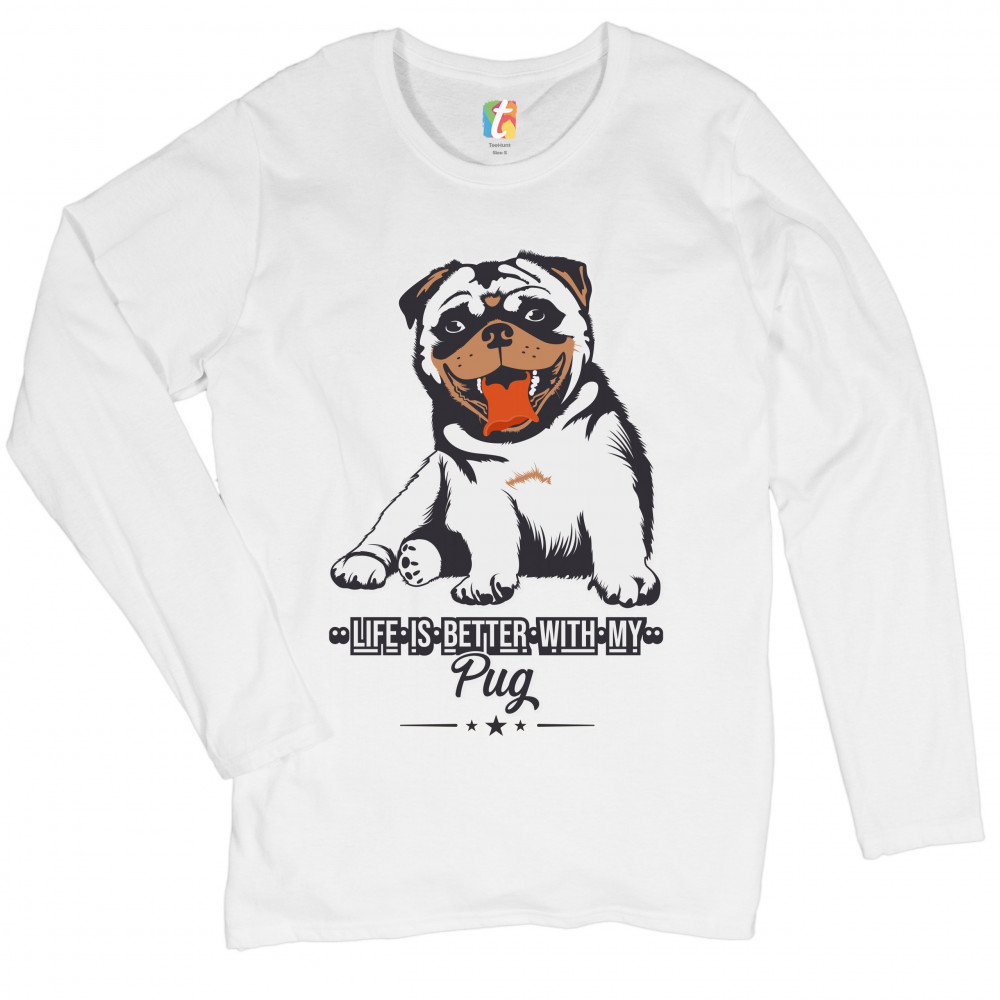 LIFE IS BETTER WITH MY PUG women's long sleeve t-shirt cute pet adorable dog white