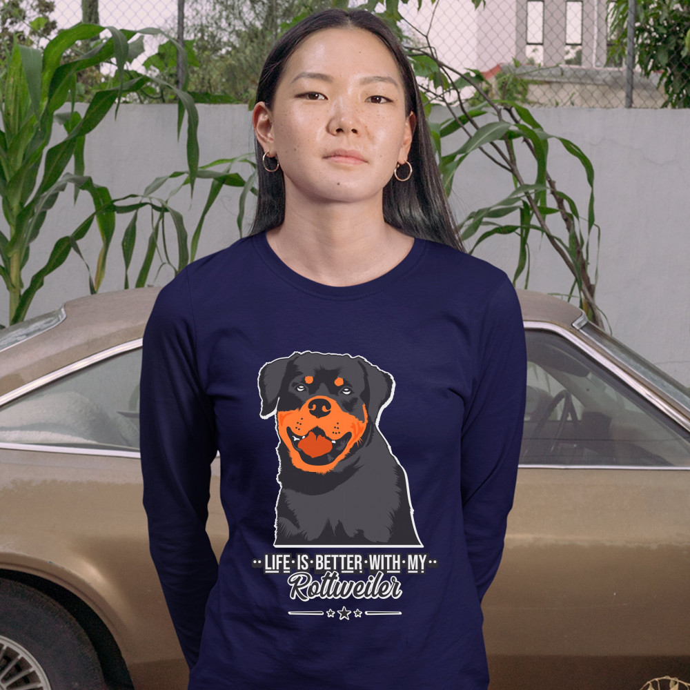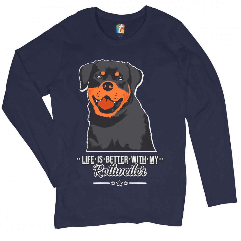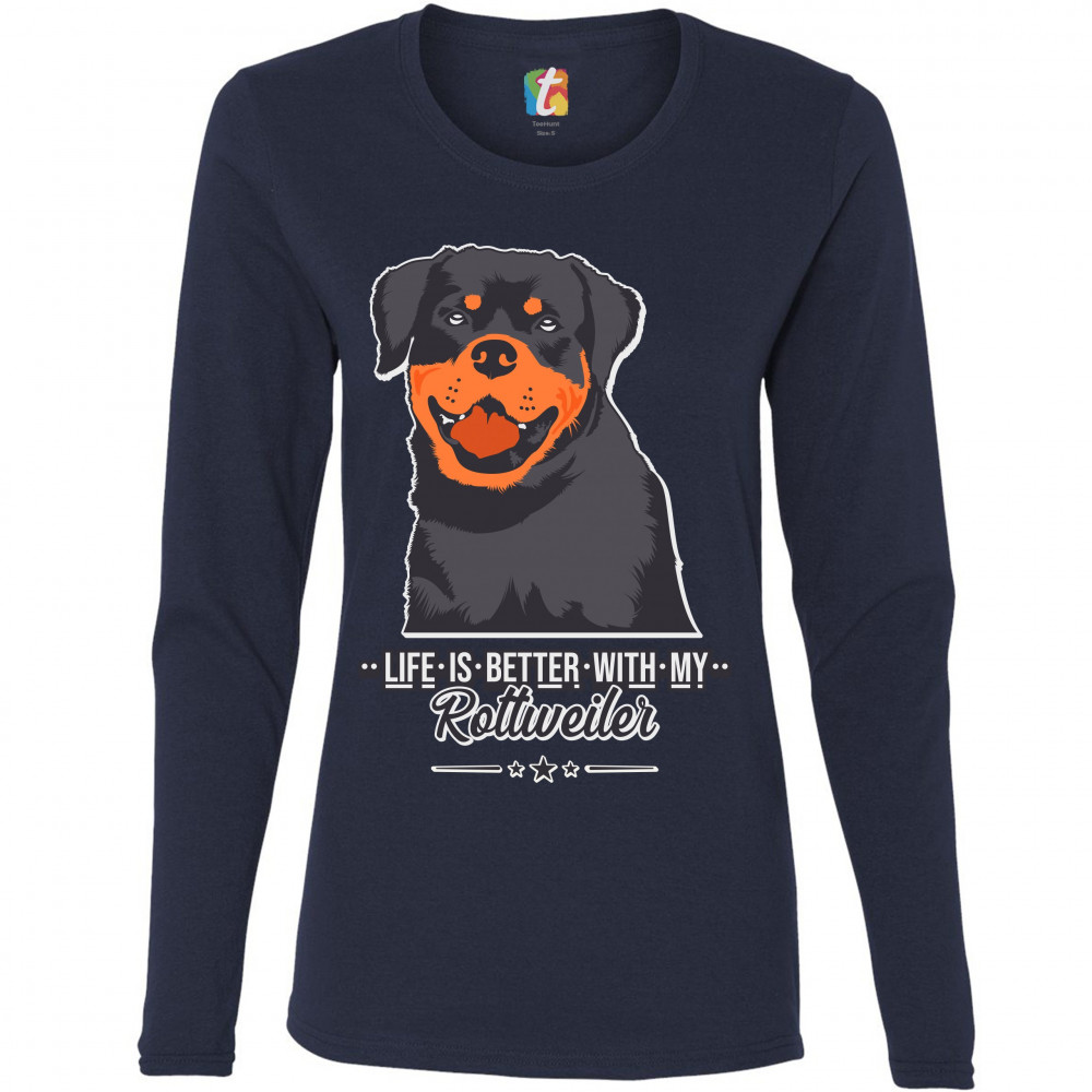 LIFE IS BETTER WITH MY ROTTWEILER women's long sleeve t-shirt dog lover rottie navy blue