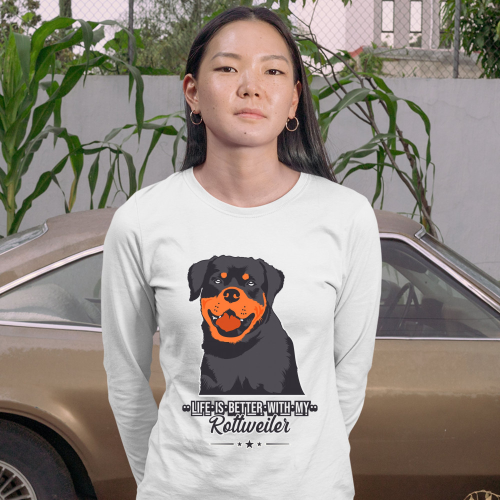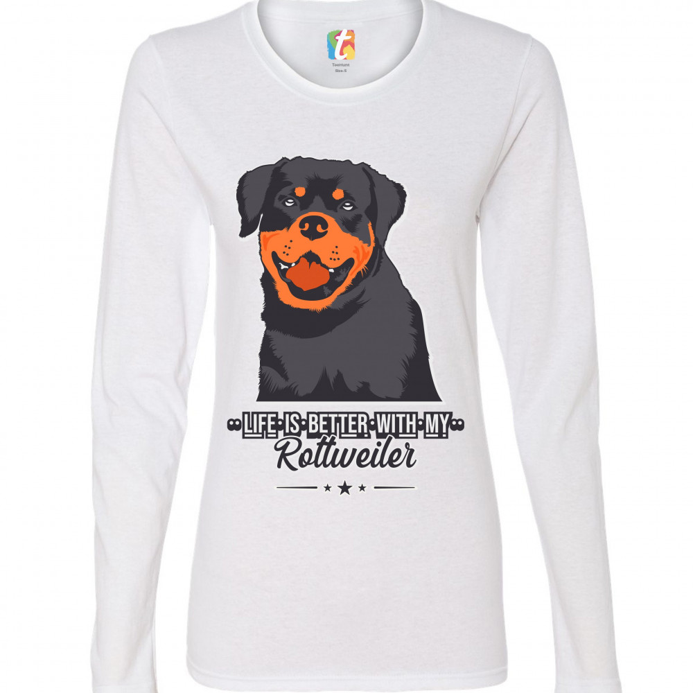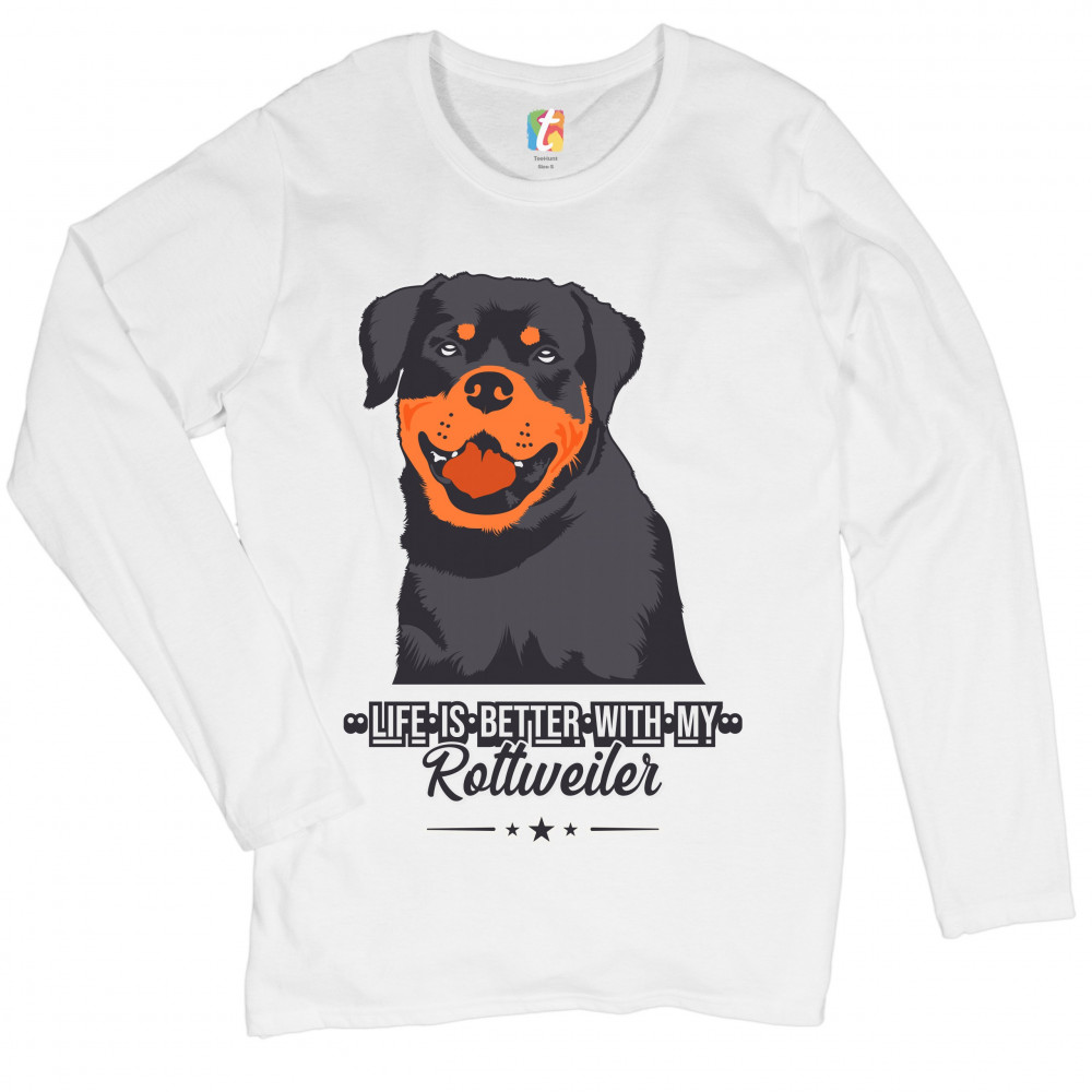 LIFE IS BETTER WITH MY ROTTWEILER women's long sleeve t-shirt dog lover rottie white