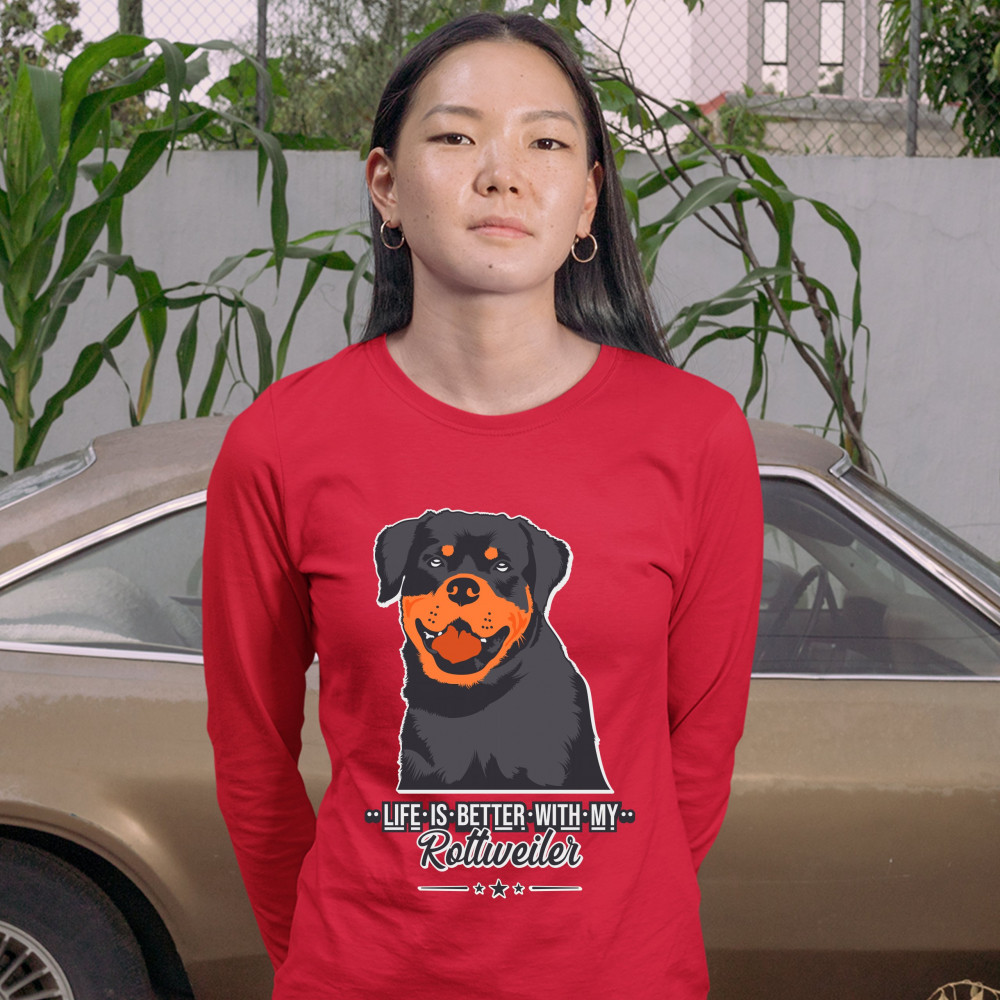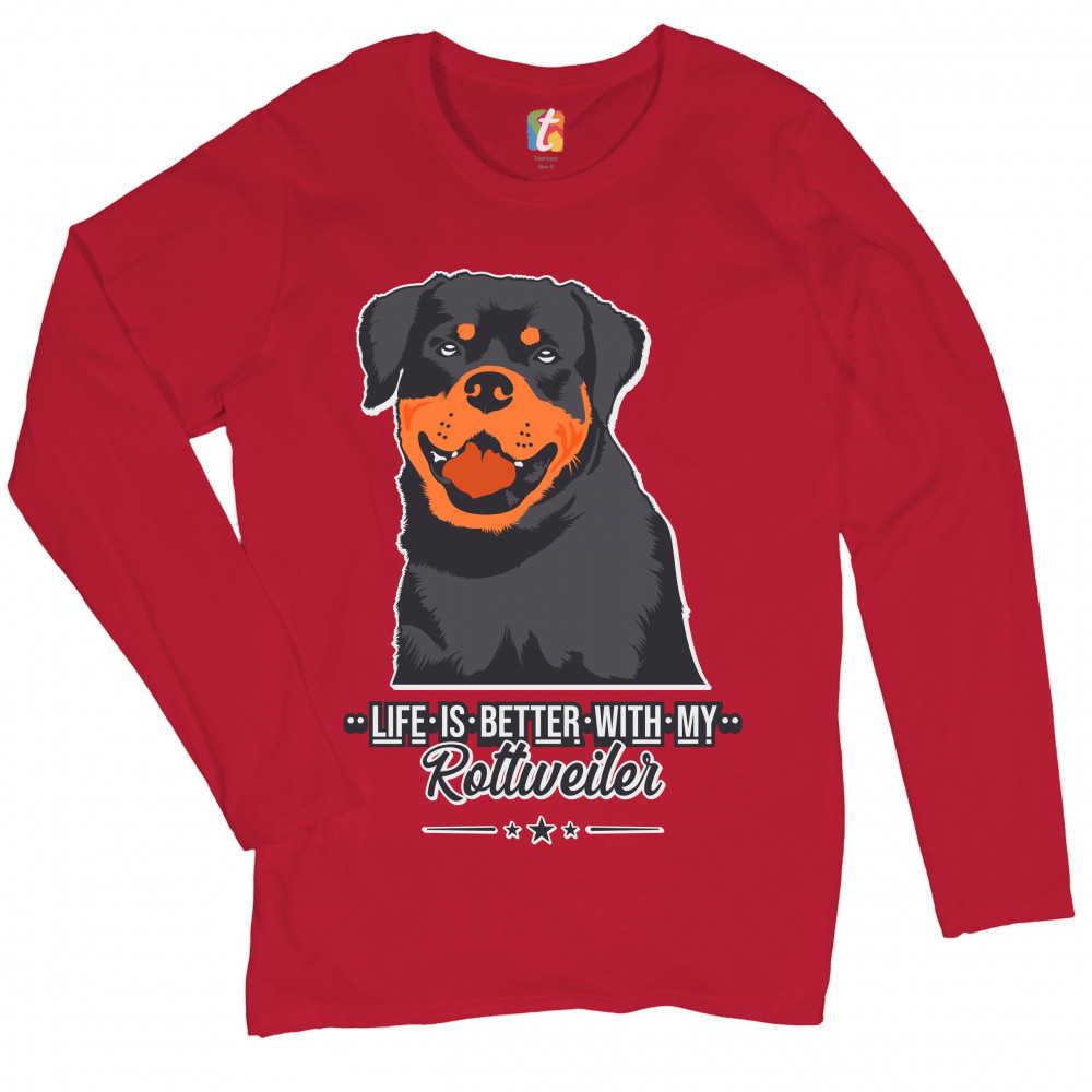 LIFE IS BETTER WITH MY ROTTWEILER women's long sleeve t-shirt dog lover rottie red