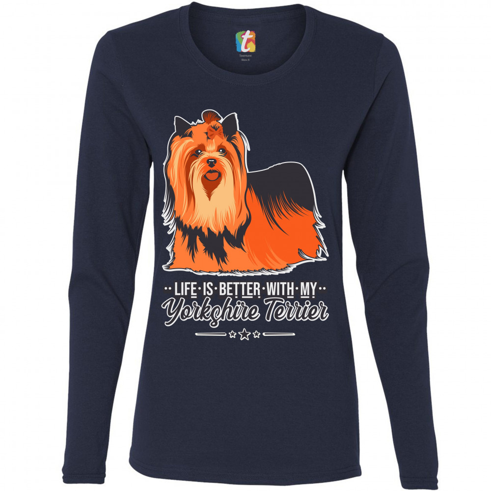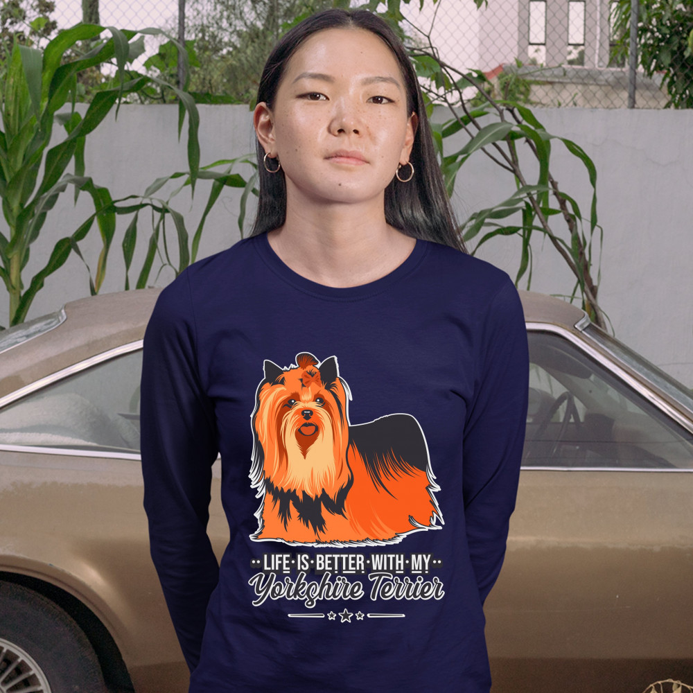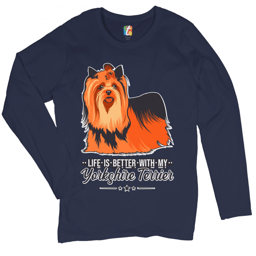 LIFE IS BETTER WITH MY YORKSHIRE TERRIER women's long sleeve t-shirt yorkie dog navy blue