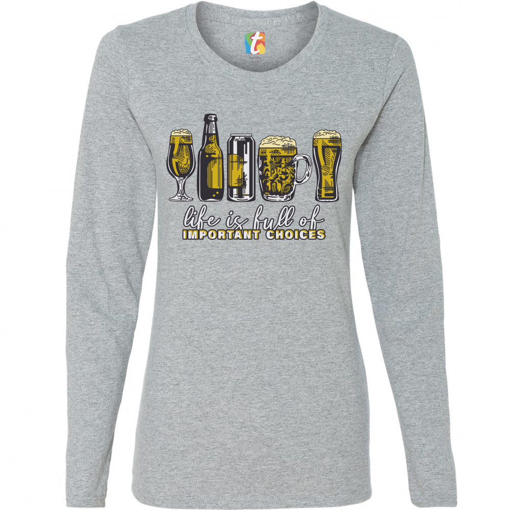 LIFE IS FULL OF IMPORTANT CHOICES women's long sleeve t-shirt beer drinking ipa gray