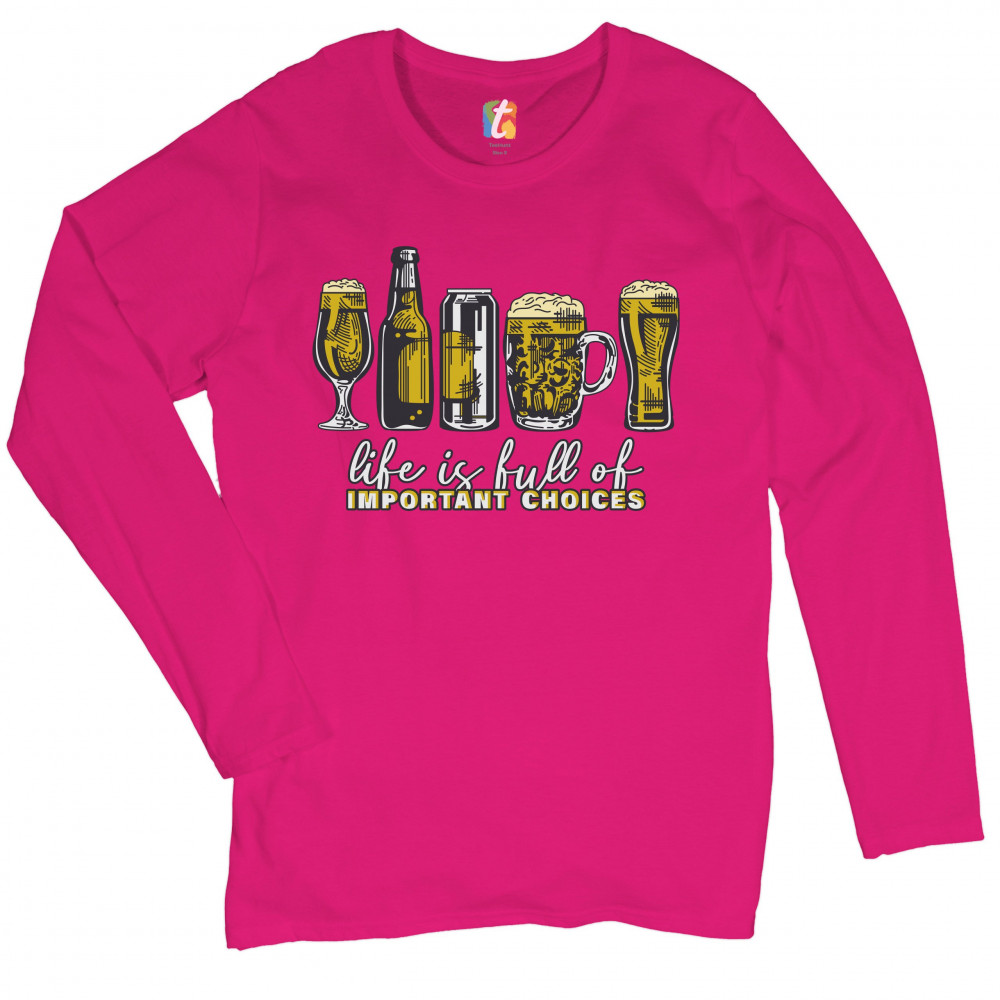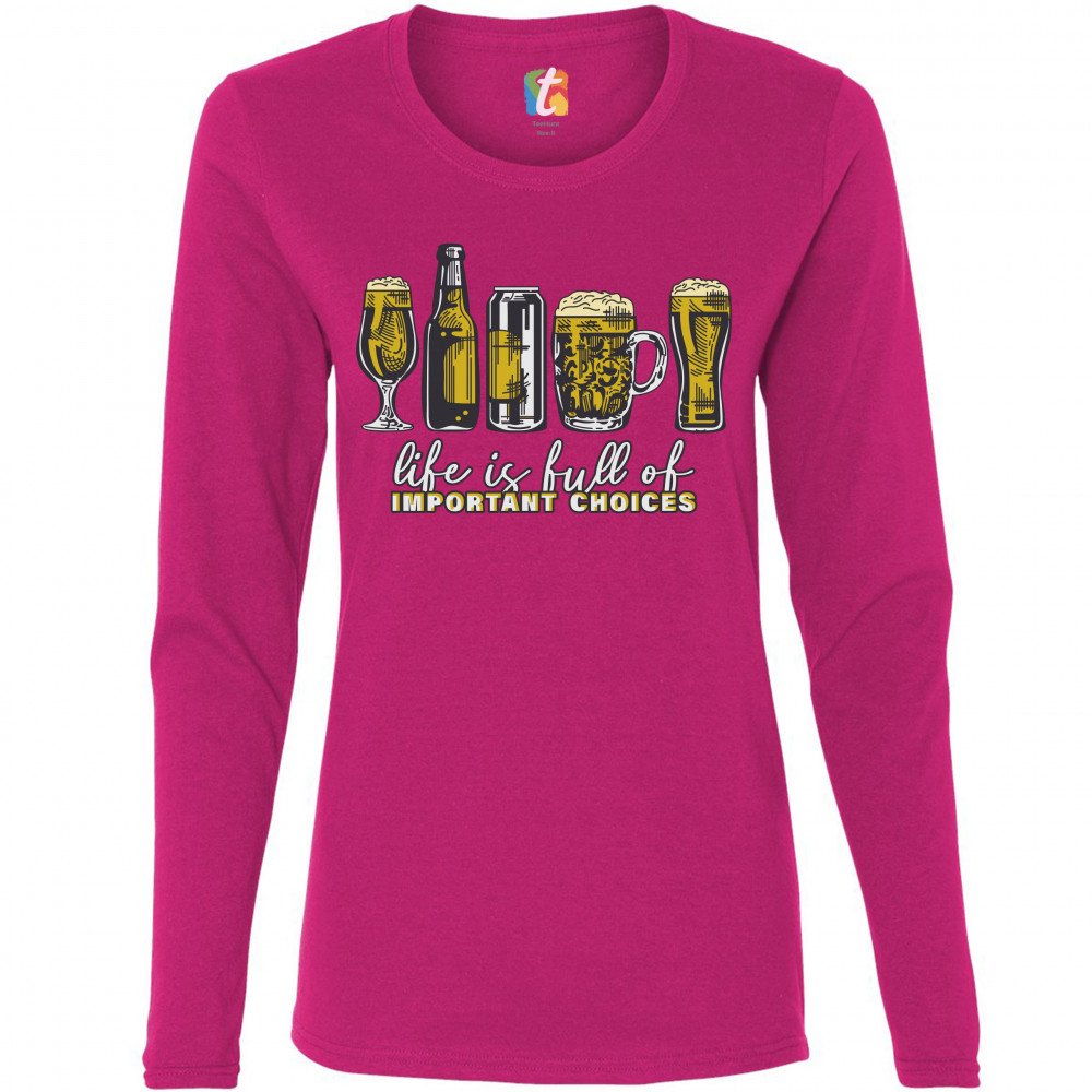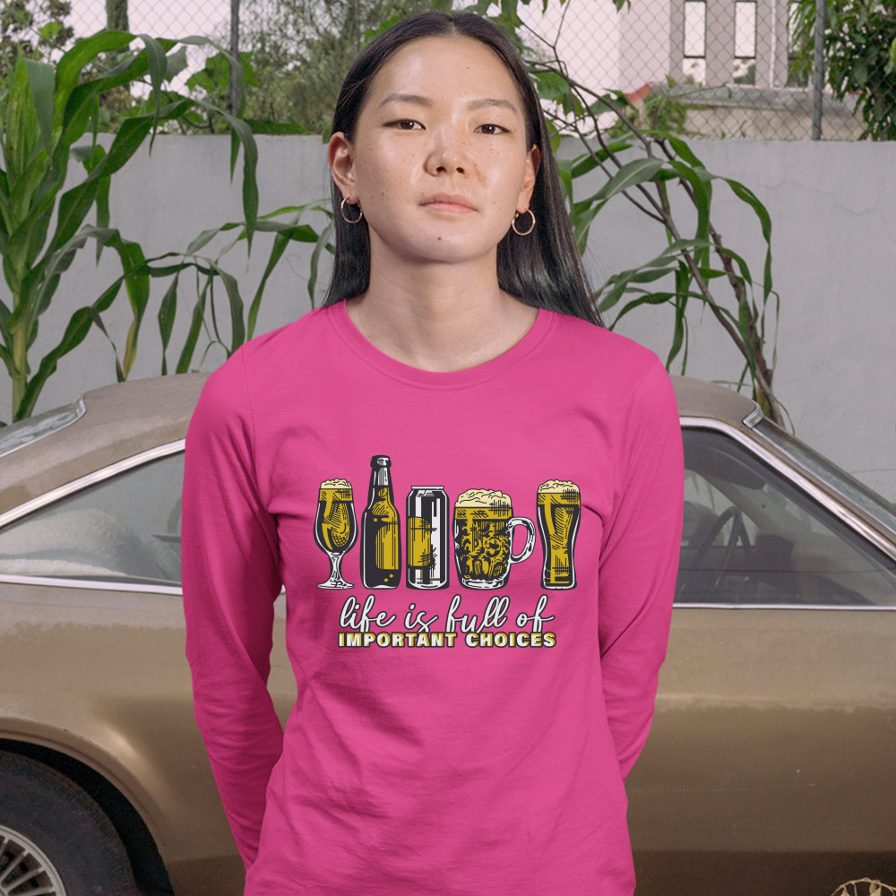 LIFE IS FULL OF IMPORTANT CHOICES women's long sleeve t-shirt beer drinking ipa pink