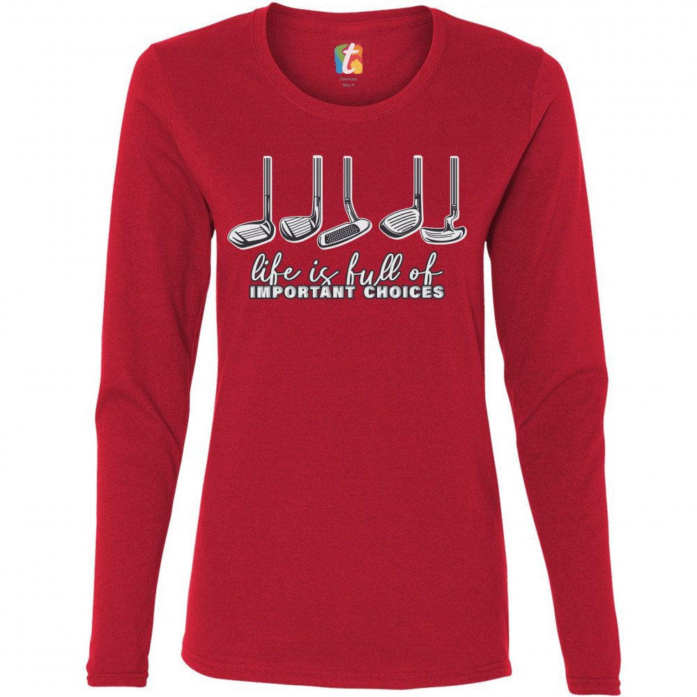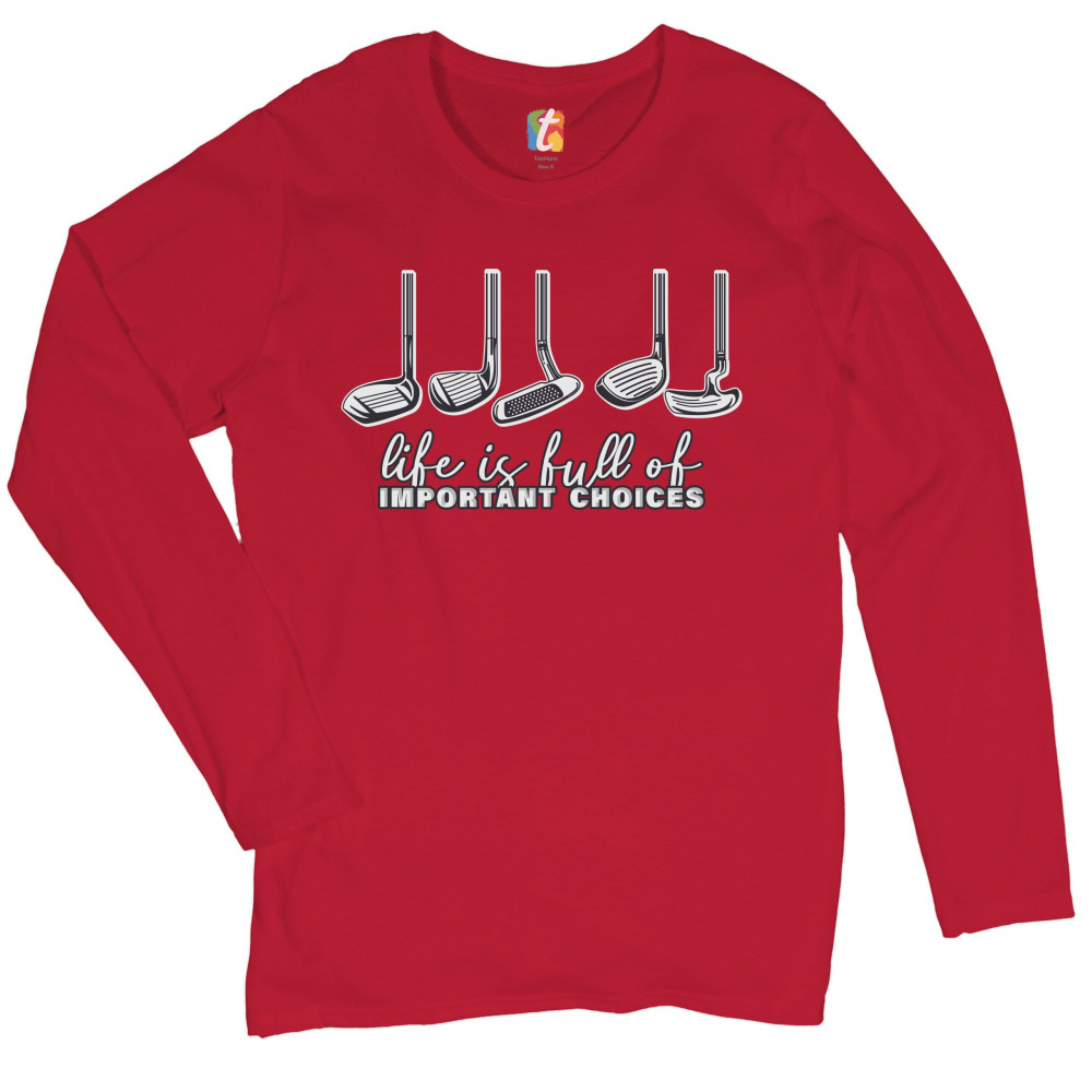 LIFE IS FULL OF IMPORTANT CHOICES women's long sleeve t-shirt funny golf clubs red