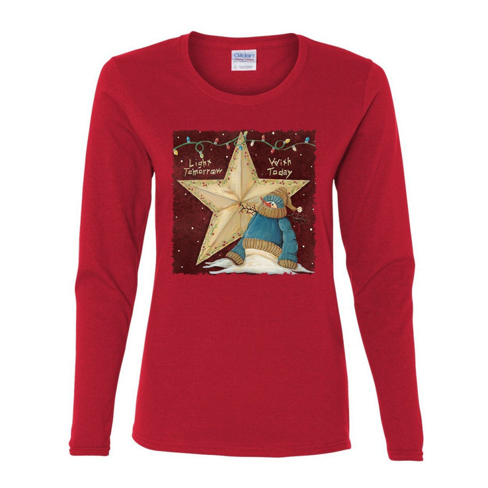 LIGHT TOMORROW WITH TODAY women's long sleeve tee cute christmas snowman holiday red