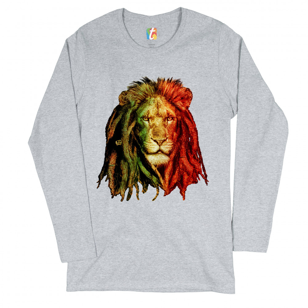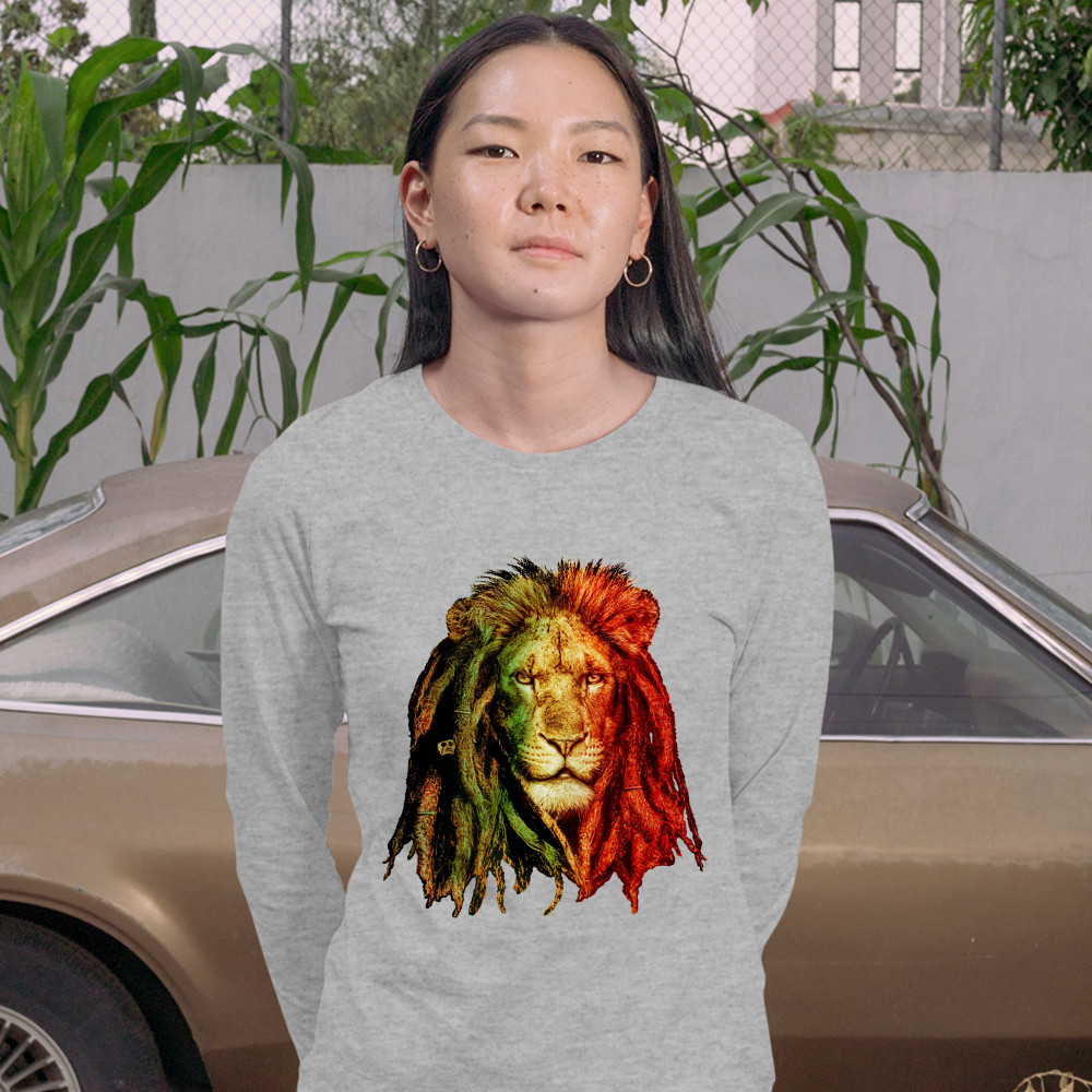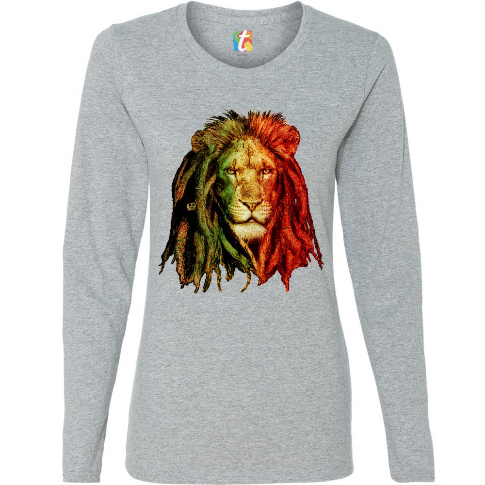 LION WITH DREADLOCKS women's long sleeve t-shirt jah jamaica marijuana 420 gray