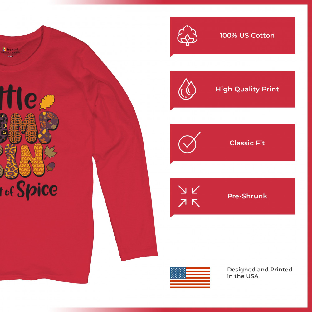 Celebrate the fall season with this playful 'Little Pumpkin with a Lot of Spice' design, perfect for festive gatherings and pumpkin patch visits.