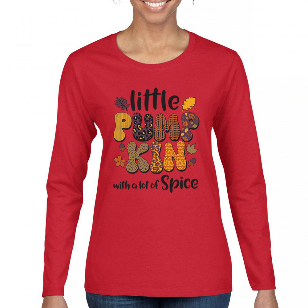 Spice up your fall wardrobe with this 'Little Pumpkin with a Lot of Spice' design, perfect for adding a festive touch to your seasonal outings. Whether you're visiting the pumpkin patch or enjoying a cozy autumn night, this playful design is a fun and vibrant way to embrace the fall spirit. Ideal for Thanksgiving, Halloween, and beyond!