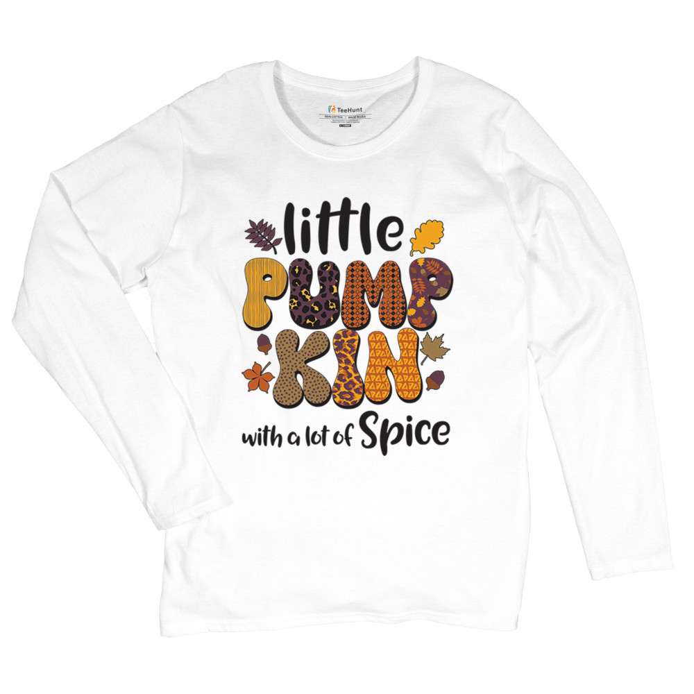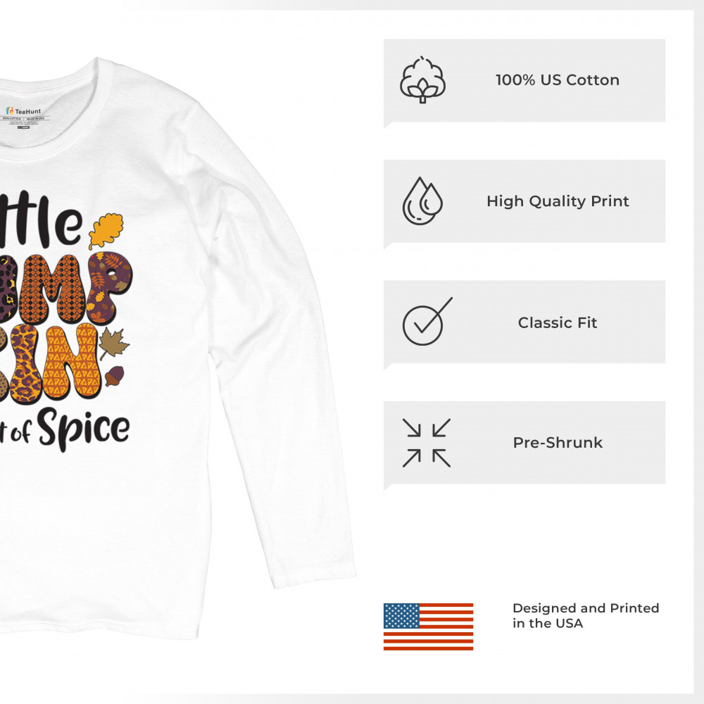 Celebrate the fall season with this playful 'Little Pumpkin with a Lot of Spice' design, perfect for festive gatherings and pumpkin patch visits.