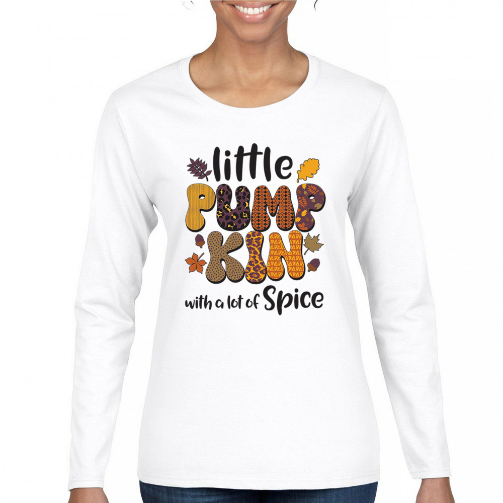 Spice up your fall wardrobe with this 'Little Pumpkin with a Lot of Spice' design, perfect for adding a festive touch to your seasonal outings. Whether you're visiting the pumpkin patch or enjoying a cozy autumn night, this playful design is a fun and vibrant way to embrace the fall spirit. Ideal for Thanksgiving, Halloween, and beyond!