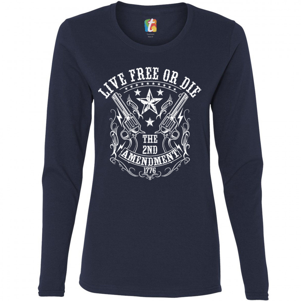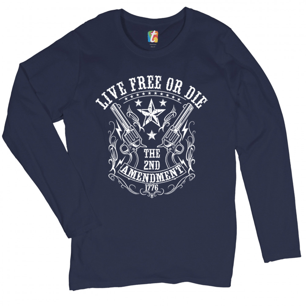 LIVE FREE OR DIE women's long sleeve t-shirt the 2nd amendment 1776 patriotic navy blue