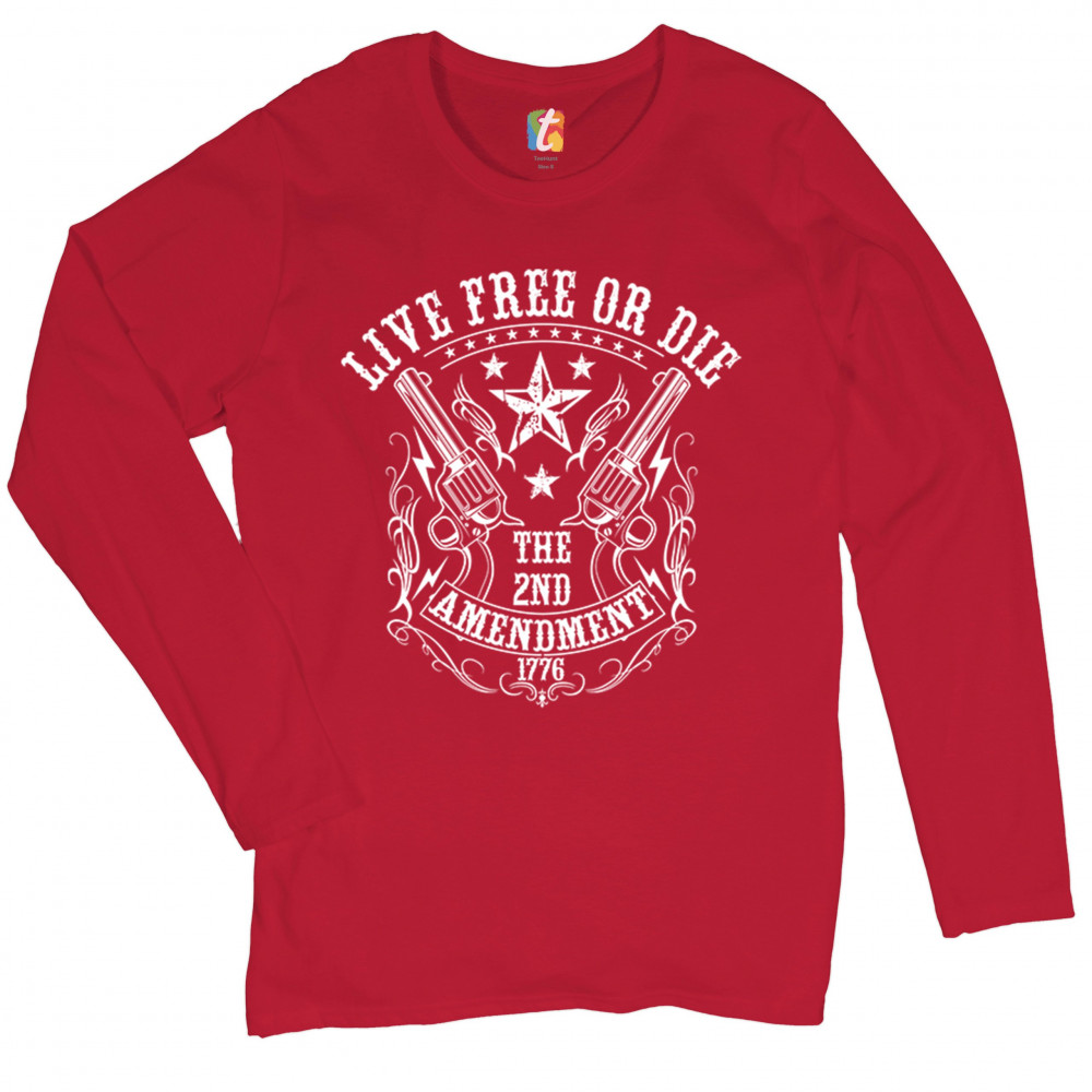 LIVE FREE OR DIE women's long sleeve t-shirt the 2nd amendment 1776 patriotic red