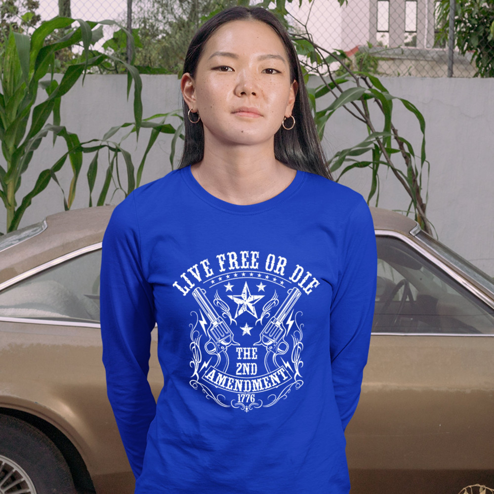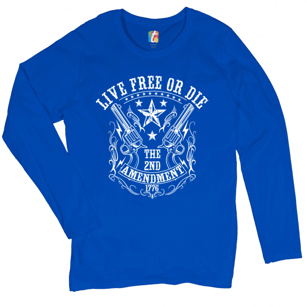 LIVE FREE OR DIE women's long sleeve t-shirt the 2nd amendment 1776 patriotic royal blue