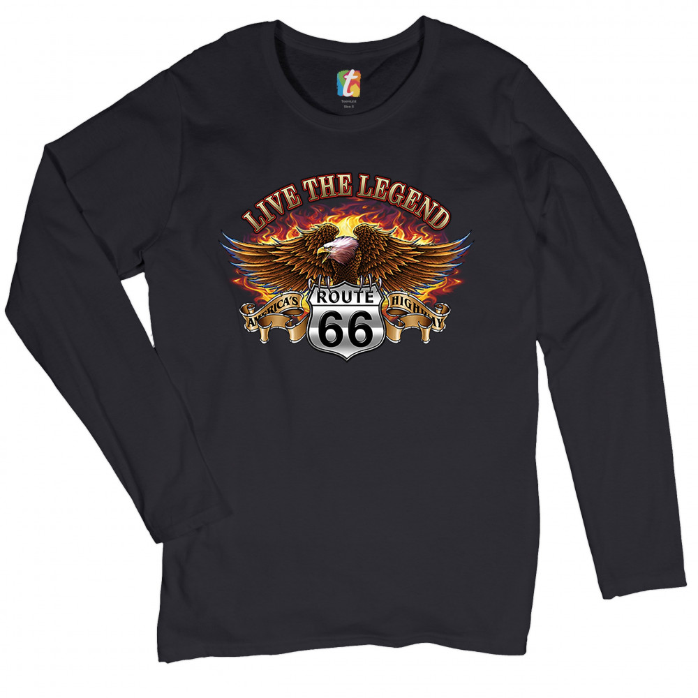 LIVE THE LEGEND AMERICA'S HIGHWAYS women's long sleeve t-shirt route 66 biker black