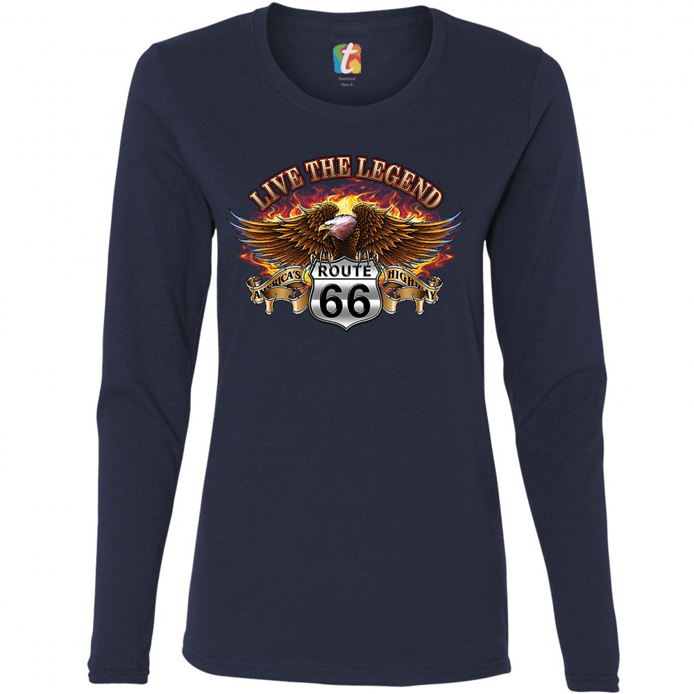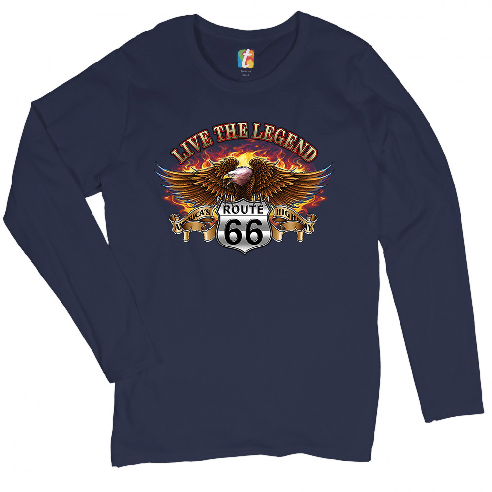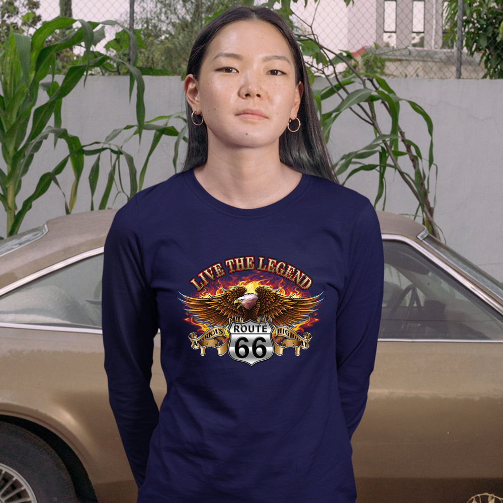 LIVE THE LEGEND AMERICA'S HIGHWAYS women's long sleeve t-shirt route 66 biker navy blue