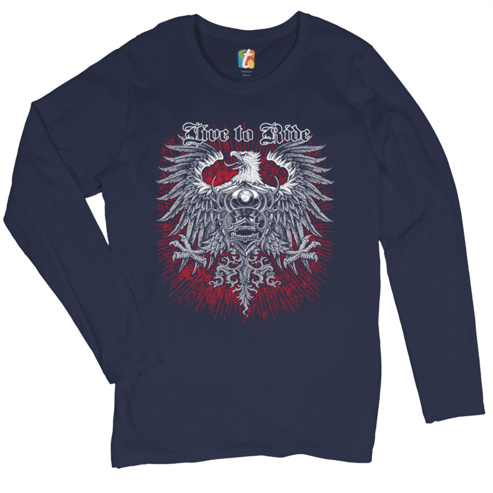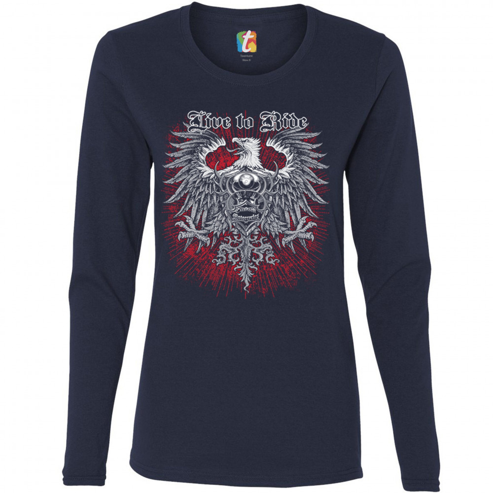 LIVE TO RIDE women's long sleeve t-shirt custom motorcycles mc biker gang eagle navy blue
