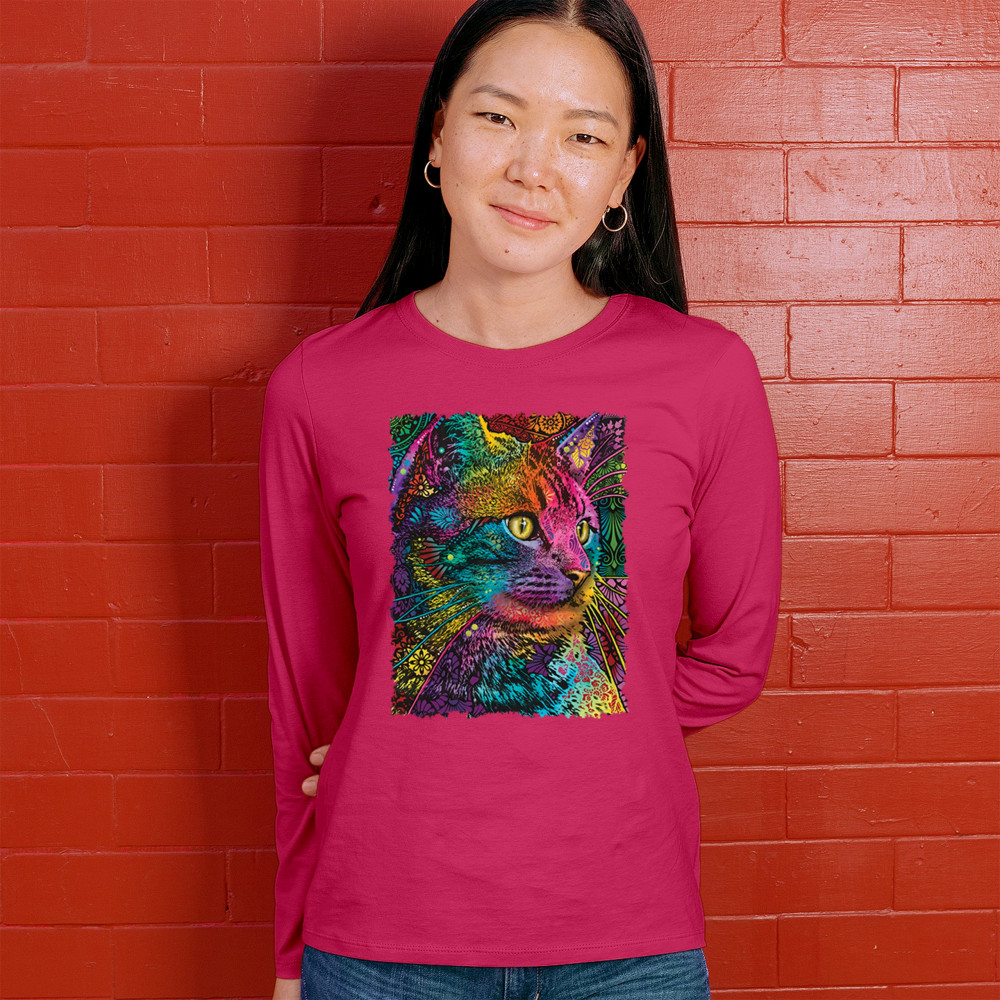 LOVABLE CAT women's long sleeve t-shirt dean russo colorful felis catus pink