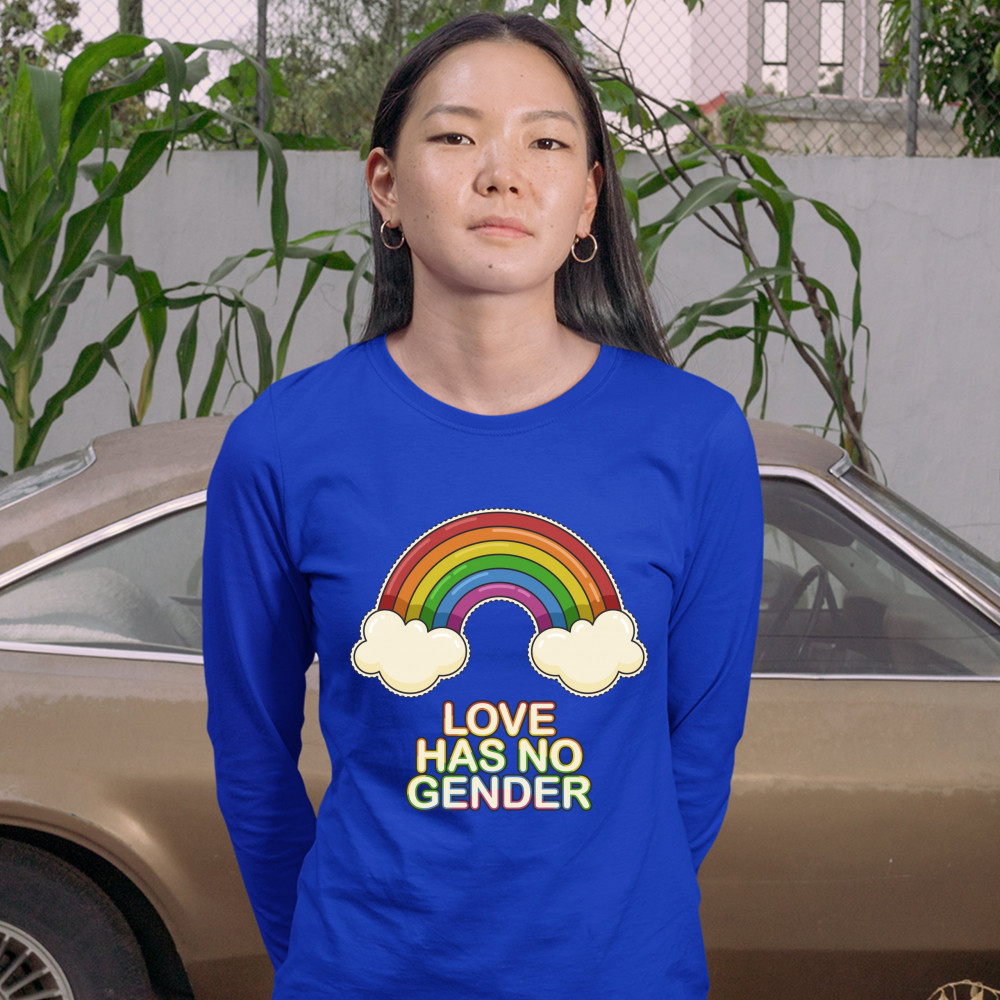 LOVE HAS NO GENDER women's long sleeve t-shirt gay pride rainbow love is love royal blue