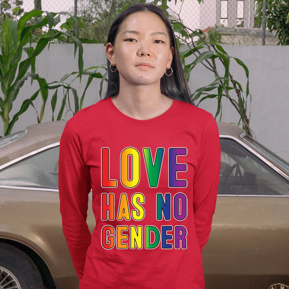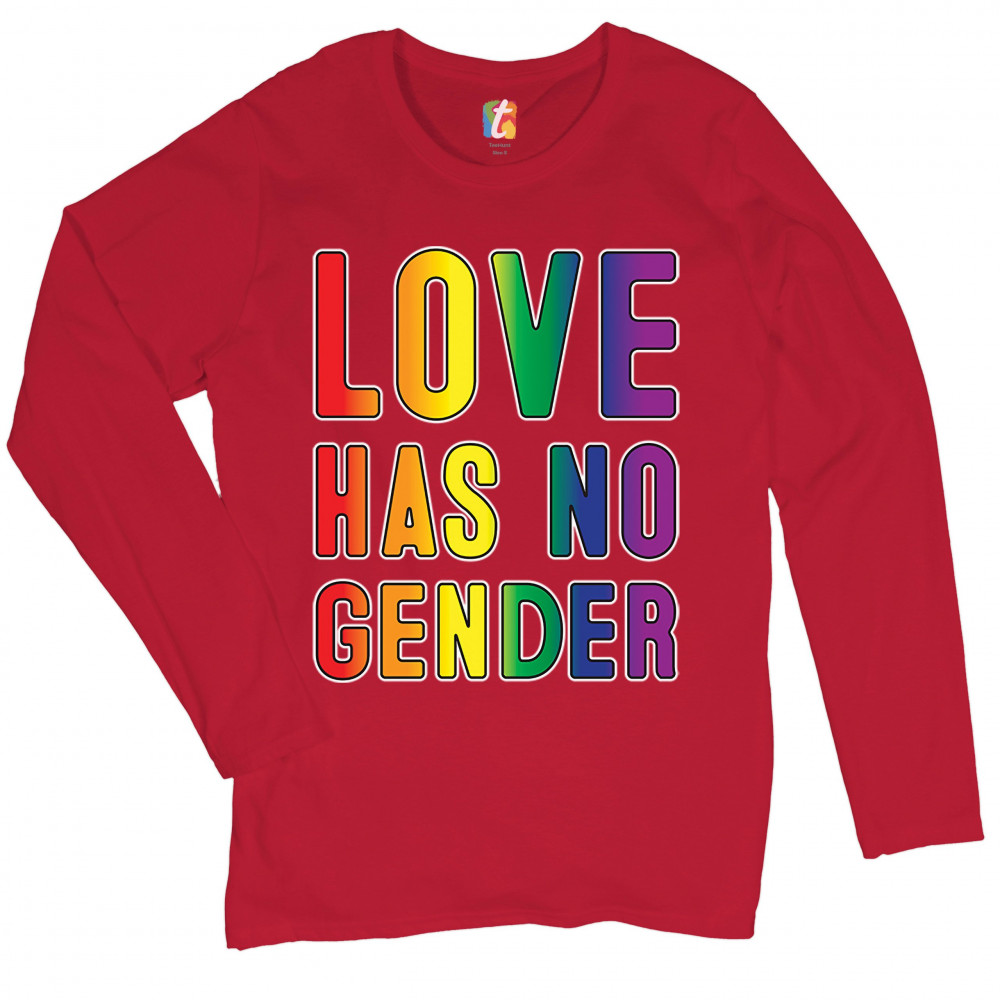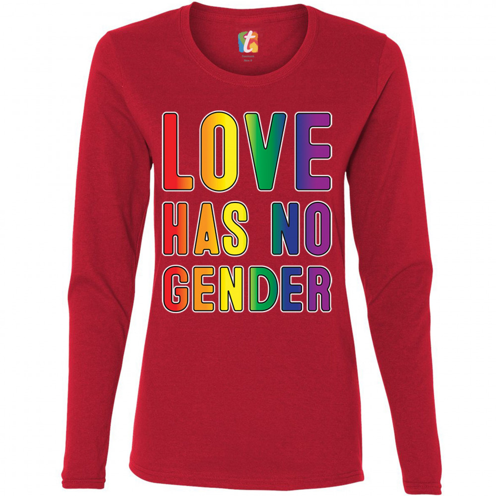 LOVE HAS NO GENDER women's long sleeve t-shirt lesbian gay bi transgender ally red