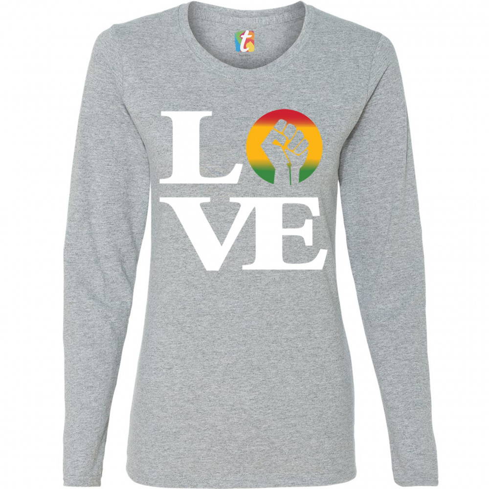 LOVE POWER FIST women's long sleeve t-shirt black lives matter african american gray