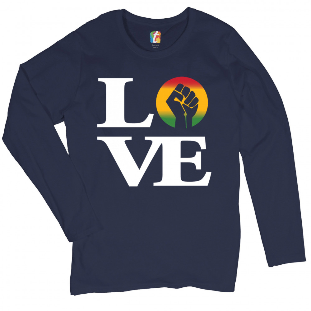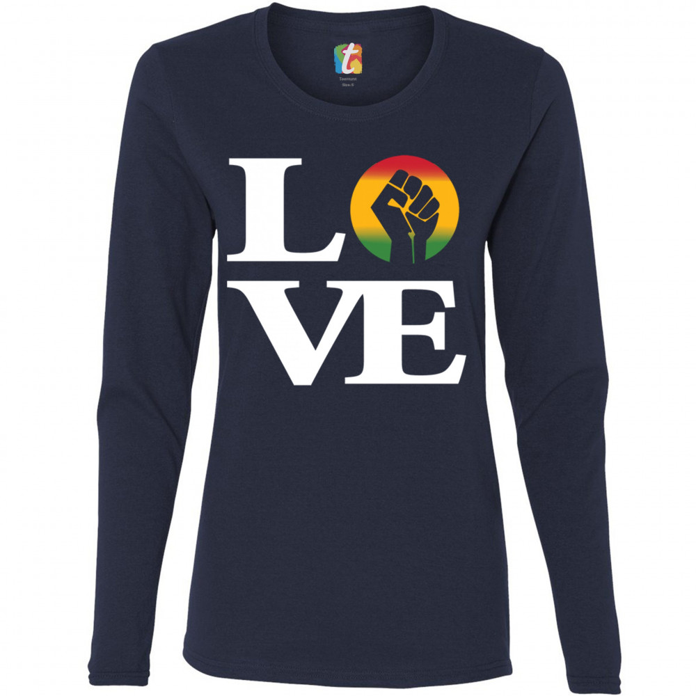LOVE POWER FIST women's long sleeve t-shirt black lives matter african american navy blue