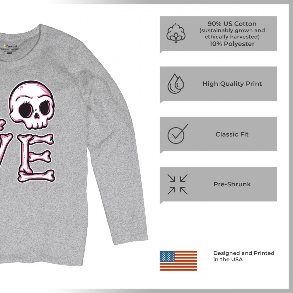 Pink skull love design with bones and gothic twist. Ideal for punk girls, goth couples, Halloween outfits, or spooky romantic gifts.