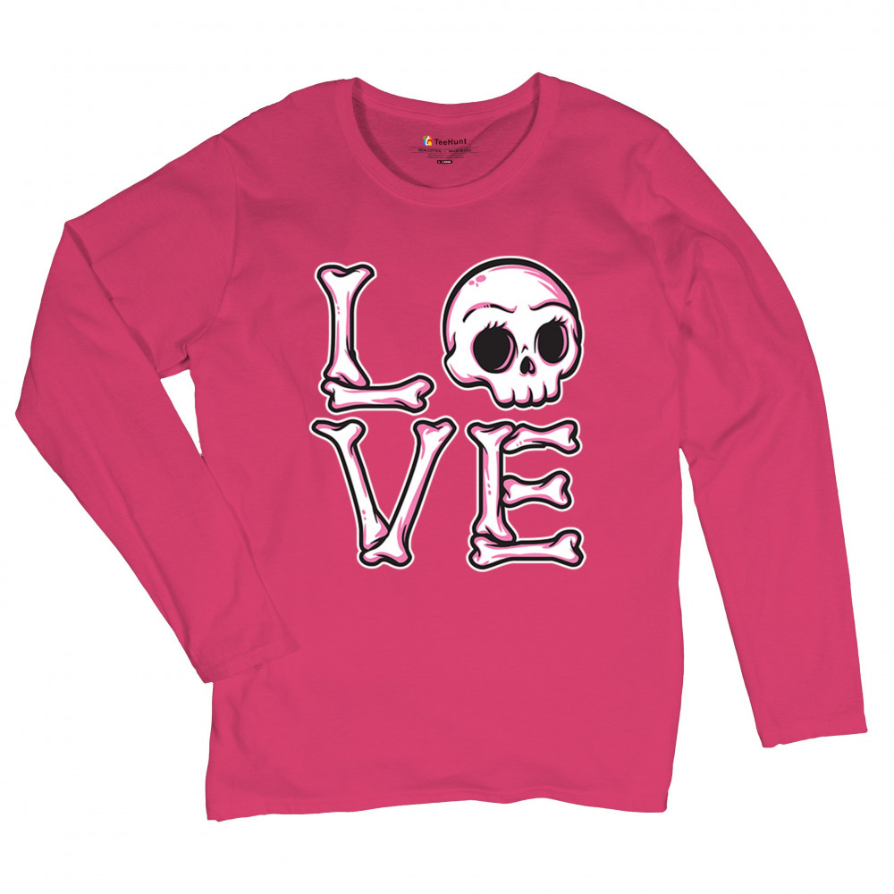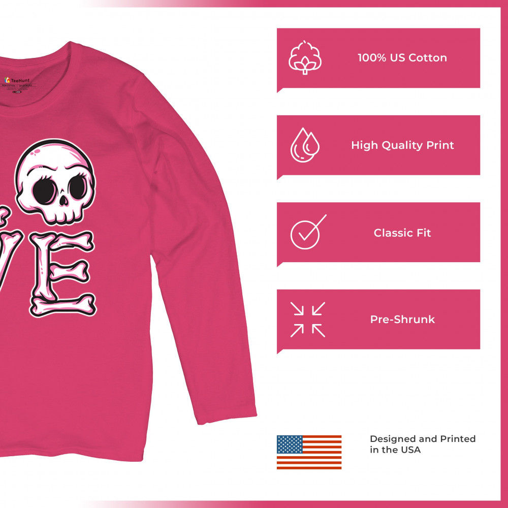 Pink skull love design with bones and gothic twist. Ideal for punk girls, goth couples, Halloween outfits, or spooky romantic gifts.