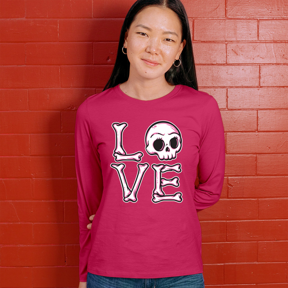Celebrate spooky romance with this playful “LOVE†design made from pink bones and a cartoon skull. Perfect for goth girls, punk couples, and alt fashion fans, this design mixes Halloween style with sweet sentiment. Great for festivals, romantic gifts, or edgy everyday wear that breaks the rules of traditional love.