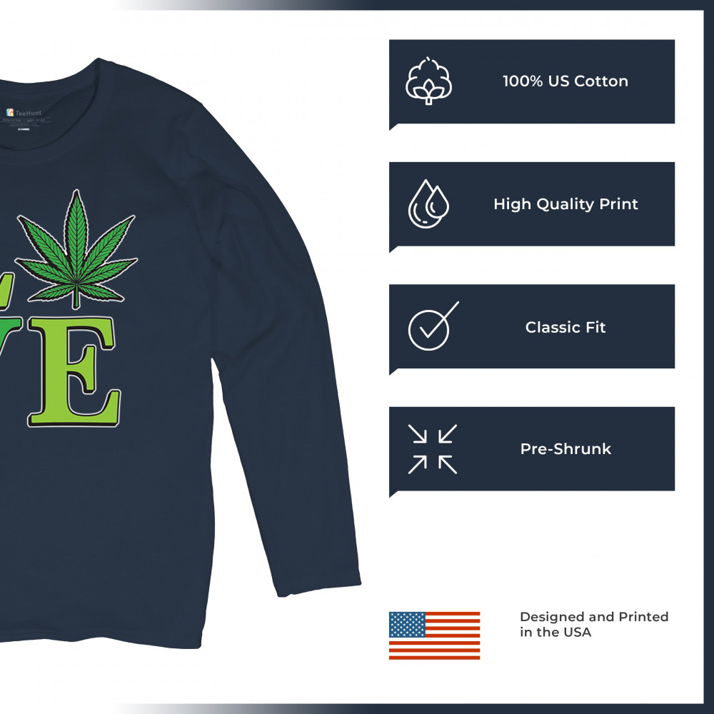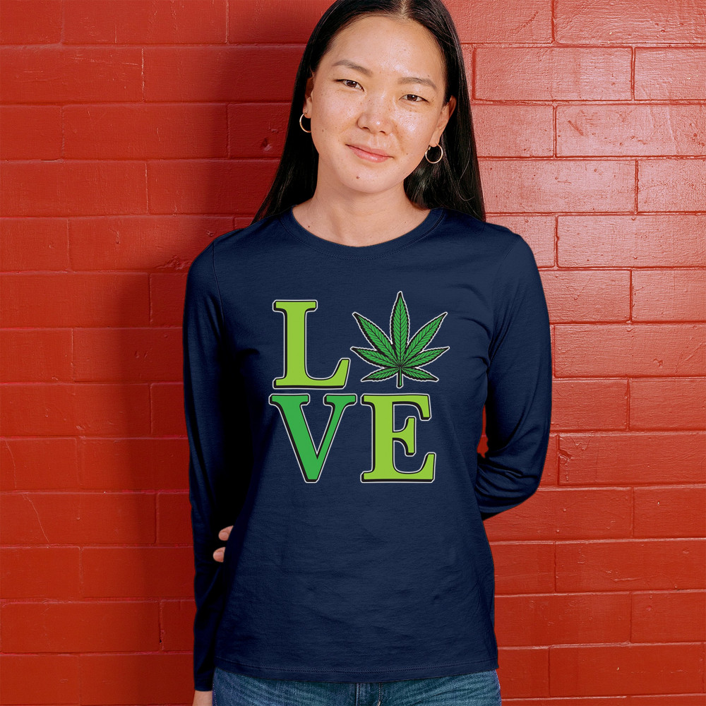 LOVE design with a bold weed leaf. Perfect for 420 fans, stoners, cannabis lifestyle wear, green pride, and marijuana lovers.